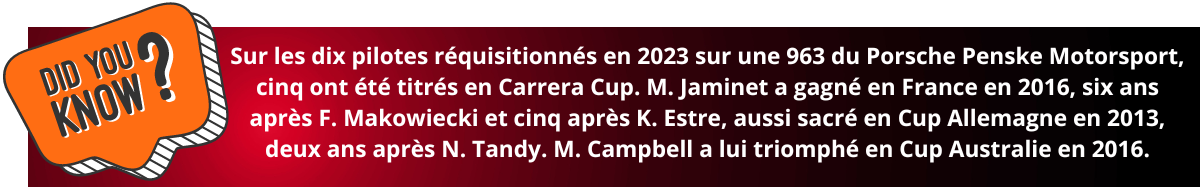 Les deux autres pilotes pour les 24 Heures de Daytona ont eux aussi un passé avec la Cup, cette fois en France. Jaxon Evans, champion Porsche Carrera Cup France 2020 (champion Porsche Carrera Cup Australia 2018) et Julien Andlauer, champion Porsche Carrera Cup France 2017, seront de la partie en Floride au sein de l'équipe dirigée par Andy Kilcoyne.