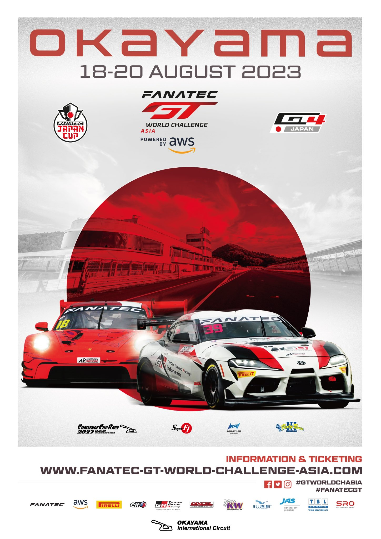 - GT World Challenge Asia - 39 voitures sont attendues sur l'épreuve d'Okayama au Japon (18-20 août), avant-dernier rendez-vous du championnat 2023, avant la finale de Sepang (Malaisie). 31 GT3 se disputeront les premiers rôles avec les titres potentiellement en jeu, alors que huit GT4 joueront la GT4 Japan, le premier événement réservé aux voitures de la catégorie. La liste des engagés est ICI