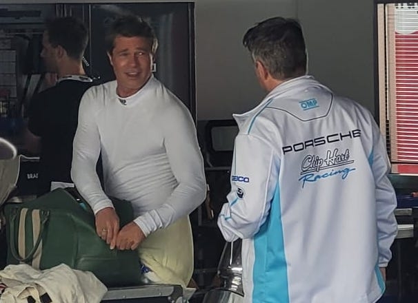 - Brad Pitt était bien sur le Daytona International Speedway aujourd'hui, pour tourner des scènes du film Apex dans lequel il incarne le pilote Sonny Hayes. Nous l'avons aperçu dans le stand du Wright Motorsports, écurie saison rouler une Porsche 911 GT3 R notamment confiée à Frédéric Makowiecki. Voici une photo prise à la volée vu qu'il nous était interdit de nous arrêter en passant dans le stand de la formation américaine.