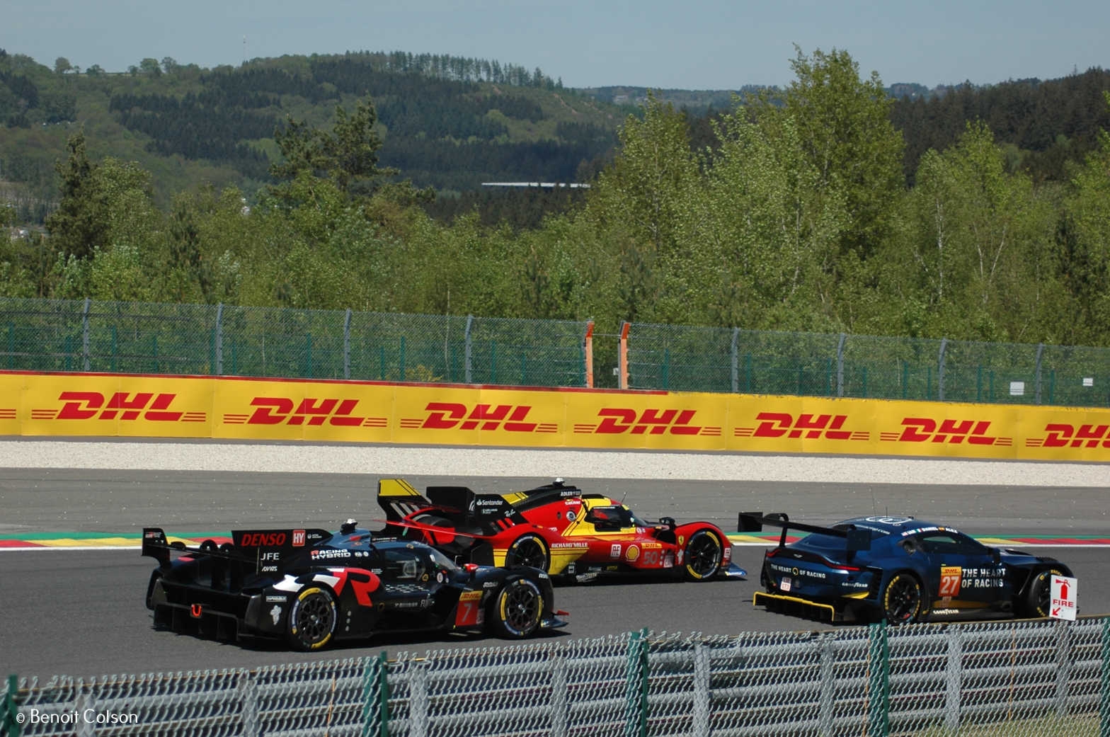 Nous passons quelques minutes au pied de ce Raidillon, regardant ces belles hypercars s’envoler vers les épicéas qui continuent de garnir le circuit depuis des décennies. On constate qu’après quelques minutes de repérage, les voitures commencent à rouler à un rythme plus rapide, et nous nous réjouissons du spectacle que cela augure ... La course du WEC est ma préférée de l’année à Spa, d’abord parce qu’elle permet d’admirer les héritières des « sport prototypes », puis parce qu’elle garantit du spectacle grâce à la présence des GT, et ensuite parce qu’elle est généralement très bien organisée et que l’ambiance qui y règne est celle qui est la plus « saine » selon moi : on sent que la passion est mêlée de beaucoup de respect, ce qui est aussi le signe que le public est majoritairement constitué de connaisseurs. Sera-ce encore le cas cette année ? Réponse plus loin...