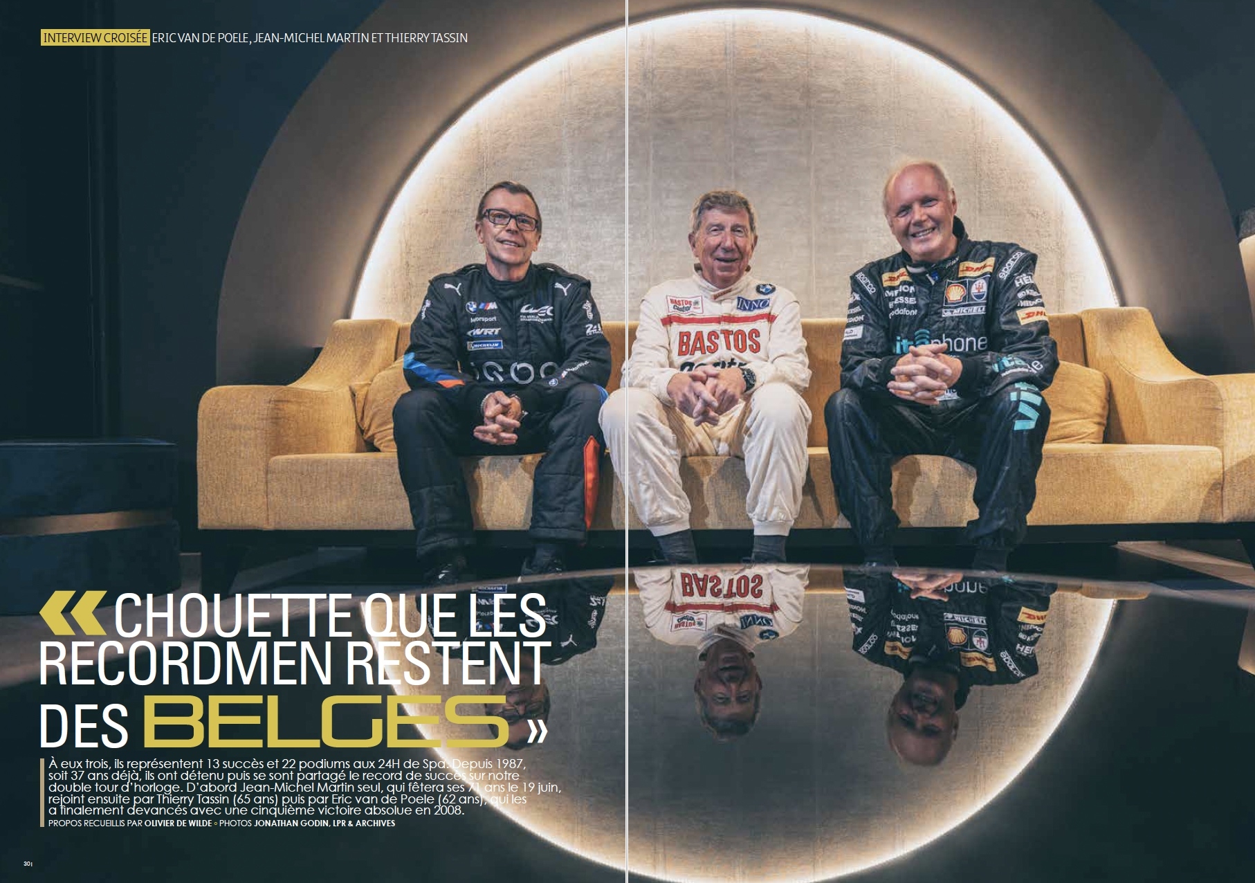 Les lecteurs passionnés, spectateurs habitués ou occasionnels de notre double tour d'horloge devenu aujourd'hui la plus grande course au monde pour Grand Tourisme, pourront y découvrir une foule d'interviews truffées d'anecdotes amusantes. On a notamment réuni pour évoquer de précieux souvenirs les trois recordmen de l'épreuve (treize succès ensemble), Eric Van de Poele, Jean-Michel Martin et Thierry Tassin avec leurs combinaisons, casques et trophées d'époque.