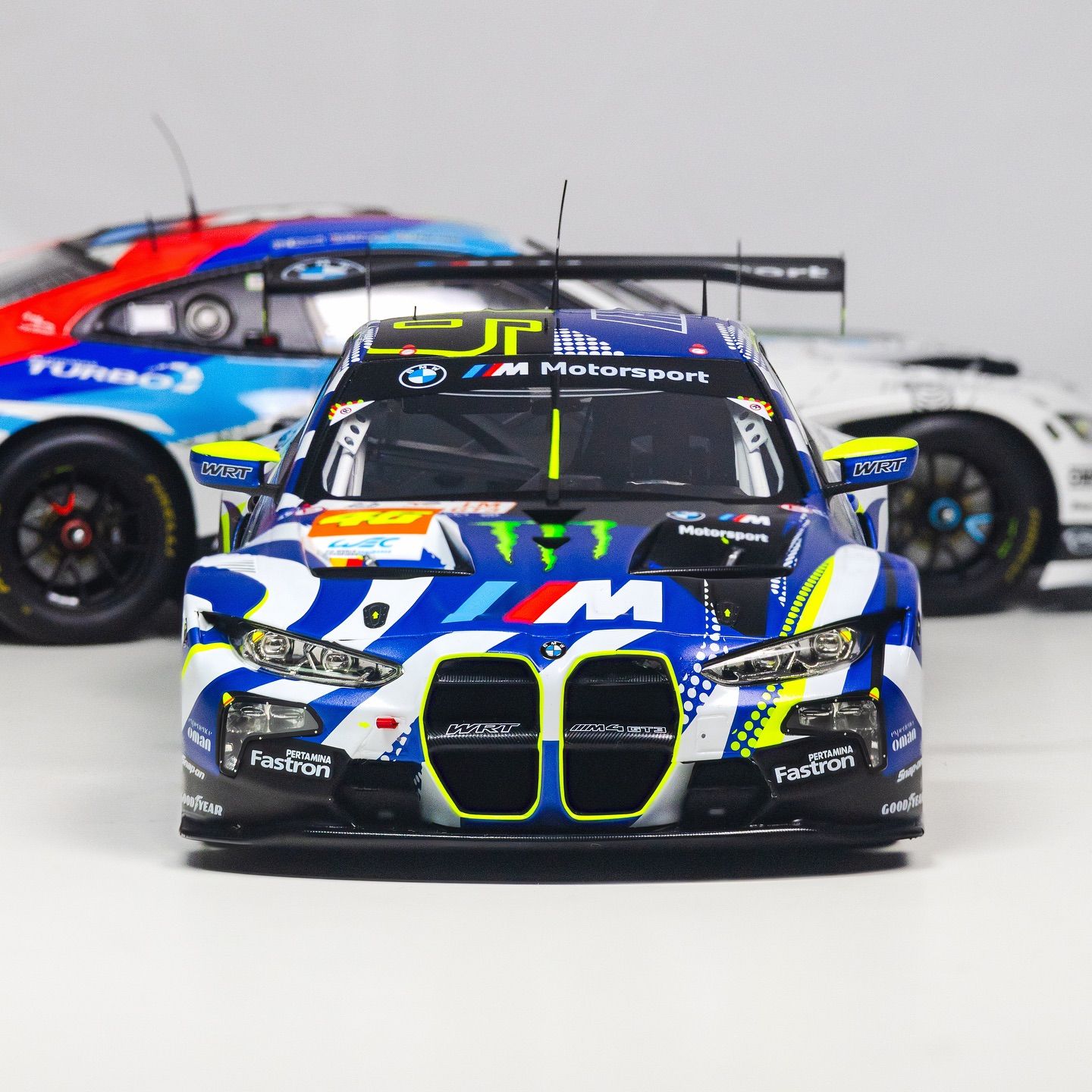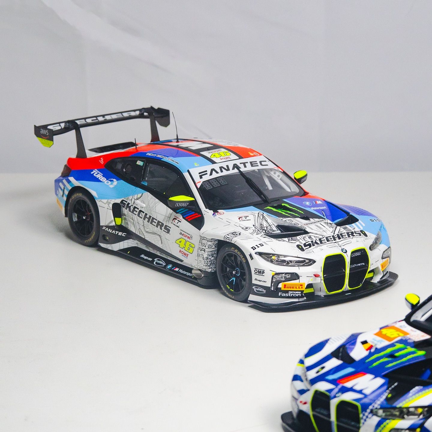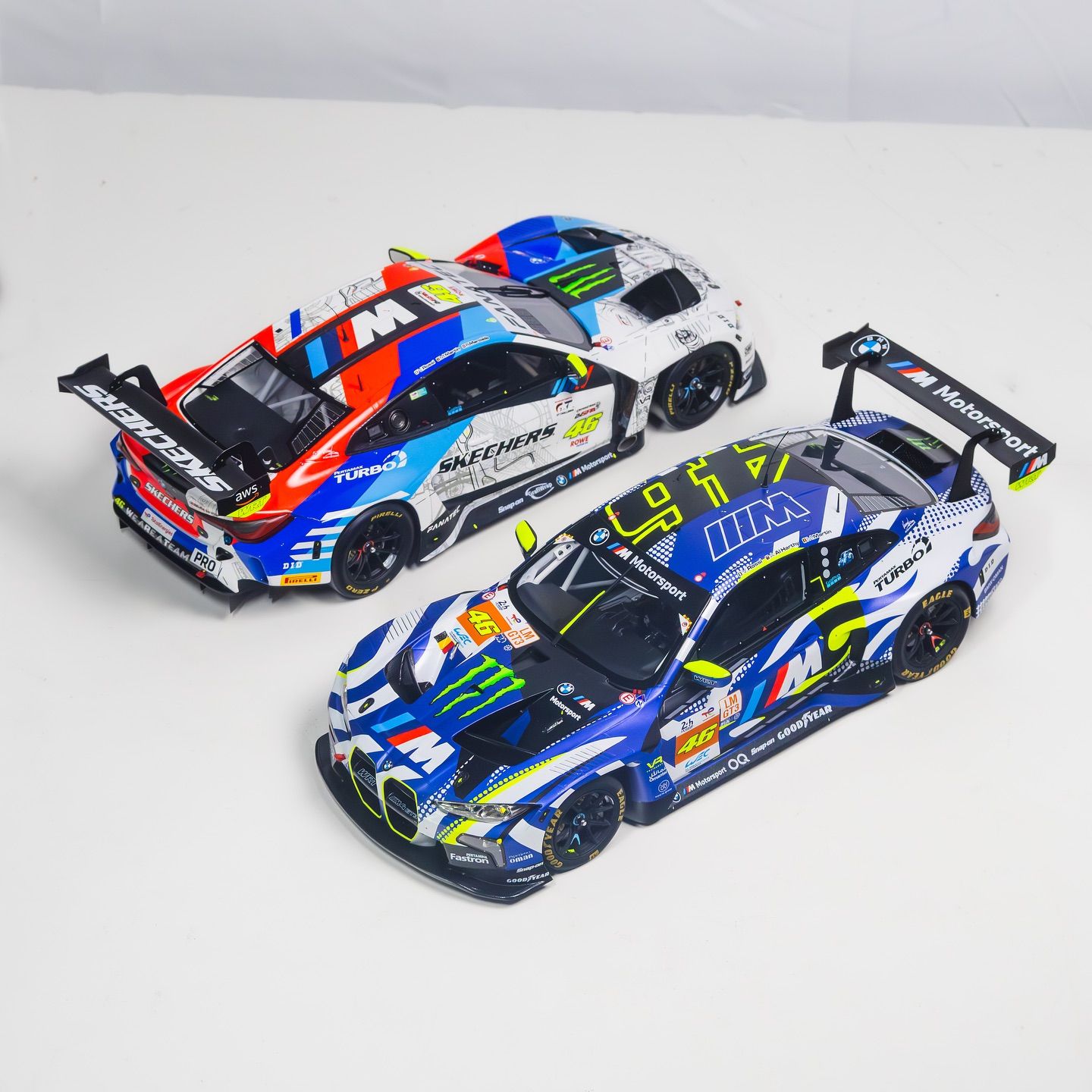 Les deux BMW M4 GT3 disponibles sont pilotées par Valentino Rossi. Spark propose au 1/18 la M4 GT3 n°46 qui a pris part aux 24 Heures de Spa 2024 aux mains de Maxime Martin, Raffaele Marciello et Valentino Rossi. Le trio s'est classé à la 24e place dans les Ardennes belges. Attention car seuls 1000 exemplaires sont disponibles (référence 18SB069).