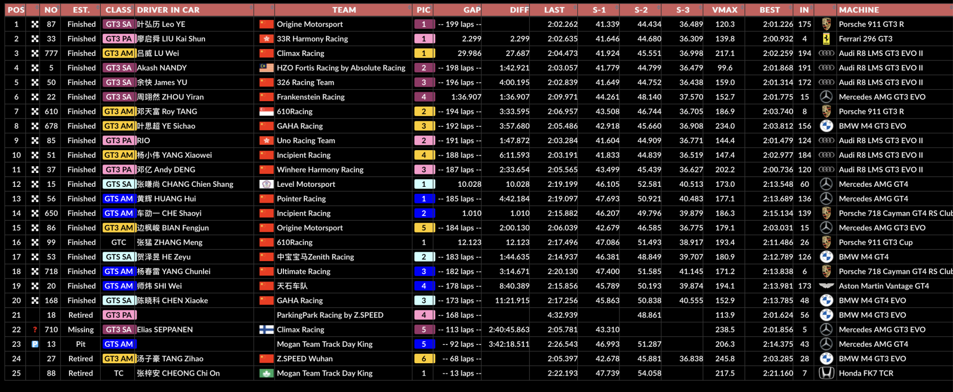 - 8H Shanghai - Chose rare en Endurance, les 8H de Shanghai étaient organisées un mercredi sur le tracé chinois. La victoire est revenue à la Porsche 911 GT3 R / Origine Motorsport de Yuan Bo, Ye Hongli, Jason Gu et Liu Hangcheng.