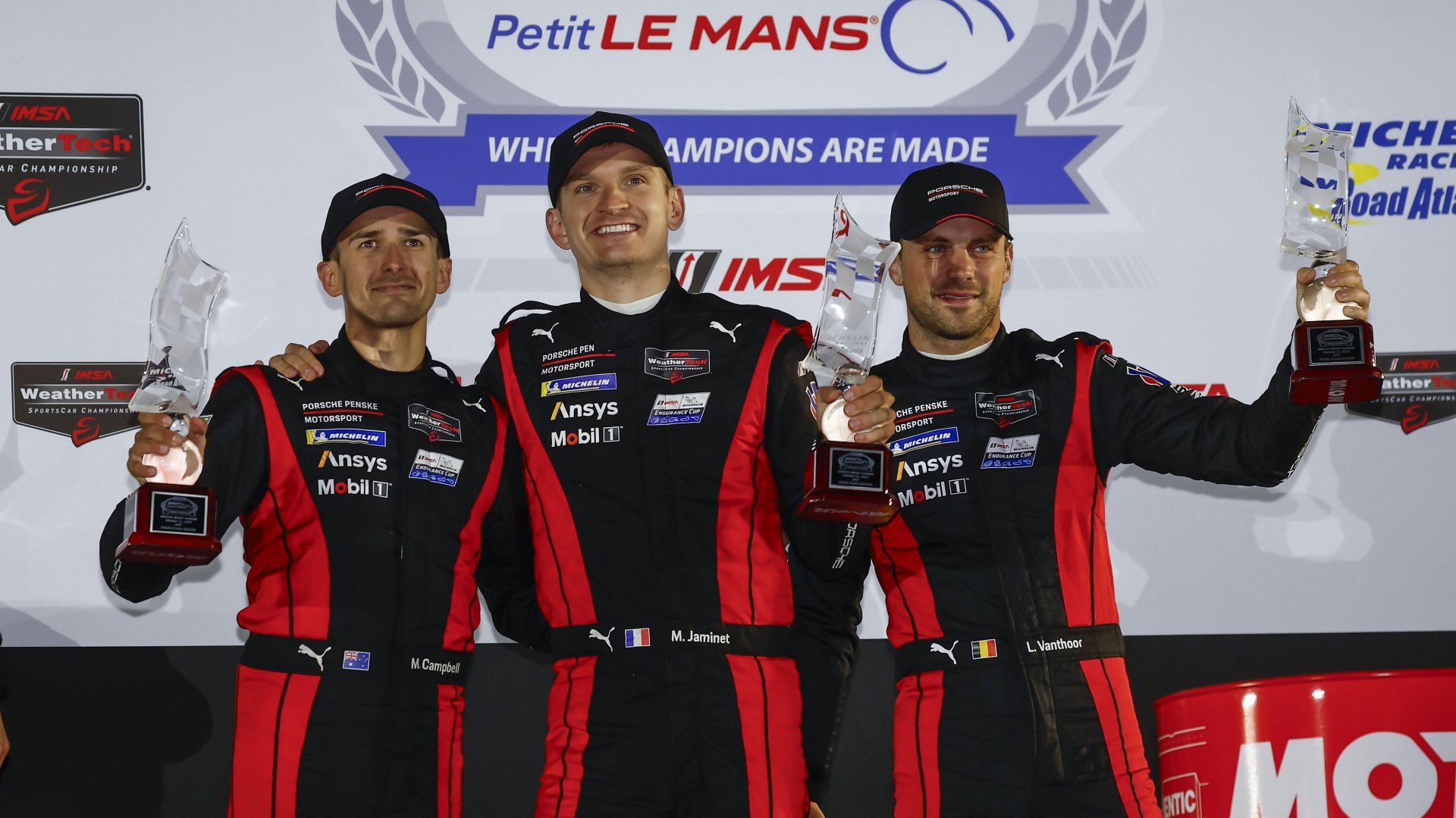 - Mathieu Jaminet et Matt Campbell décrochent leur deuxième titre commun dans la série américaine après celui obtenu en GTD PRO en 2022 avec la Porsche 911 GT3 R - Pfaff Motorsports. « Nous avions encore quelques interrogations après les qualifications, mais nous avons fait les bons choix en matière de réglages » commente Jaminet qui confesse que l'équipage n'a pas tout tenté en fin de course pour viser la victoire et s'est concentré sur le titre. « Dans le dernier relais, nous avons simplement décidé de suivre la 31 et d'abandonner l'idée de prendre trop de risques pour essayer de monter plus haut sur le podium et de gagner la course. »
