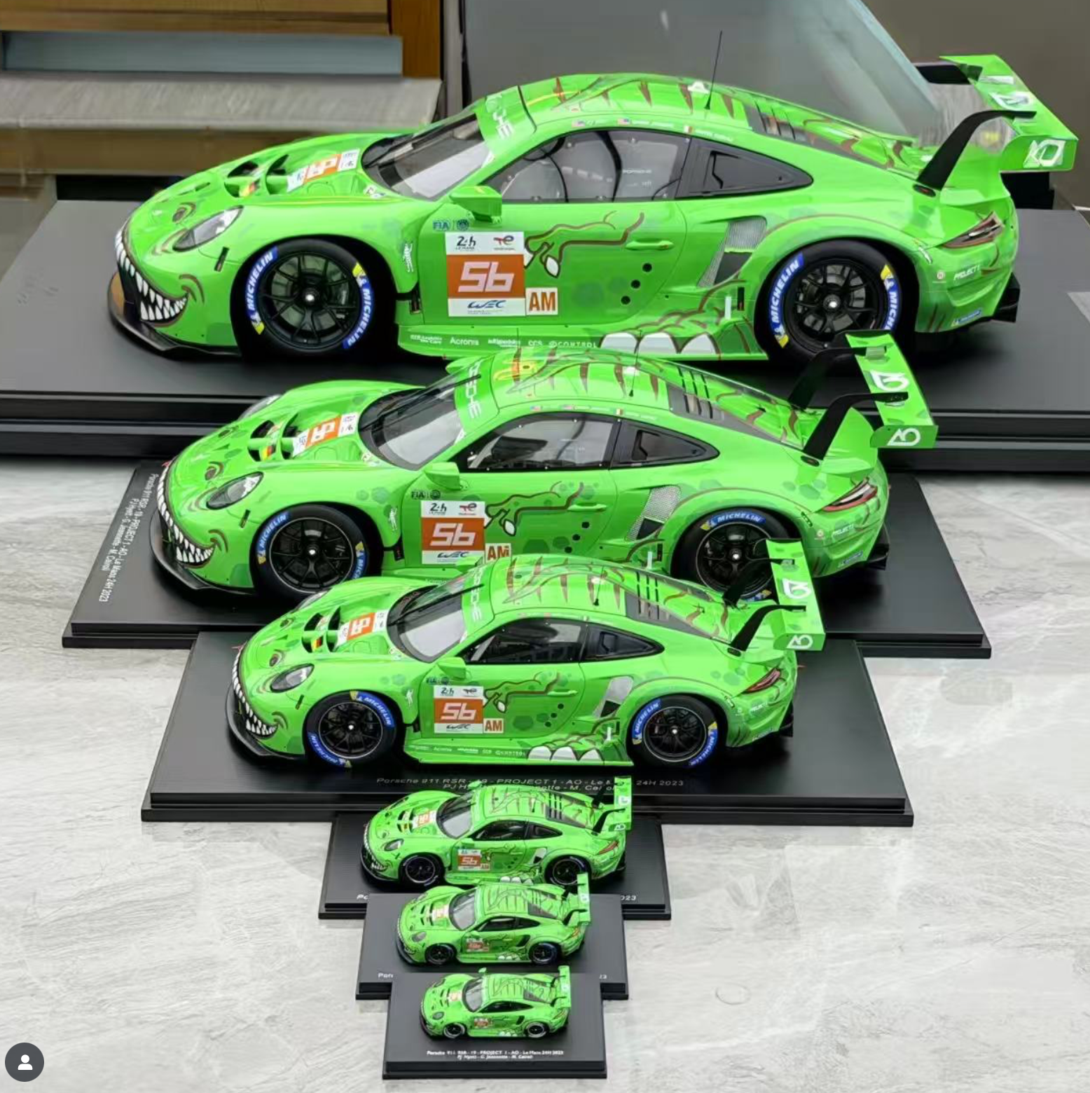 Spark propose la Porsche verte 'Rexy' dans différents formats. Que vous n'ayez pas beaucoup de place ou que vous ayez une grande vitrine, il y en a pour tous les goûts. L'échelle va du 1/87 au 1/8.