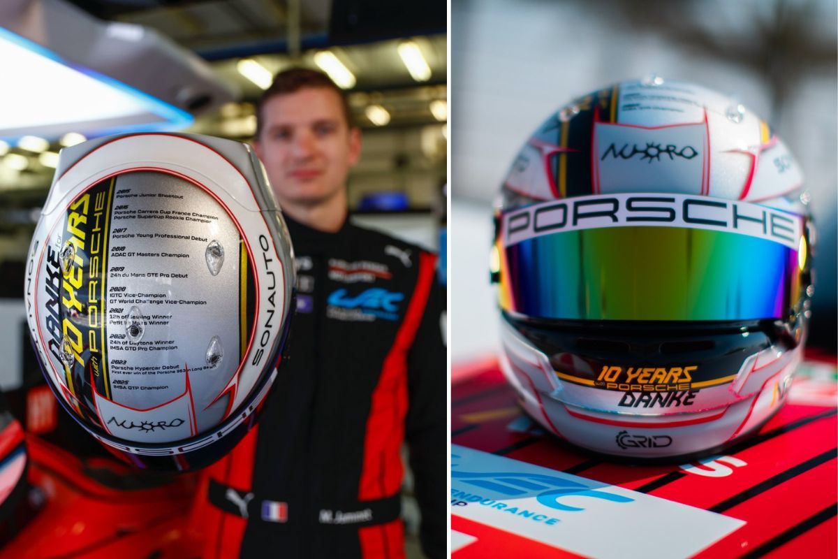 ⬆️ Ce week-end, Mathieu Jaminet dispute sa dernière course avec Porsche. Dans la famille depuis dix ans, c'est un gros chapitre de sa carrière qu'il s'apprête à clôturer. Le Français a décidé de revêtir son casque d'une livrée spéciale qui met notamment en avant les faits marquants de son parcours avec le constructeur allemand, qu'il ne manque évidemment pas de remercier. Le champion IMSA 2025 espère que cette livrée lui permettra de terminer en beauté aux côtés de Julien Andlauer et Laurin Heinrich sur la 963 n°5.