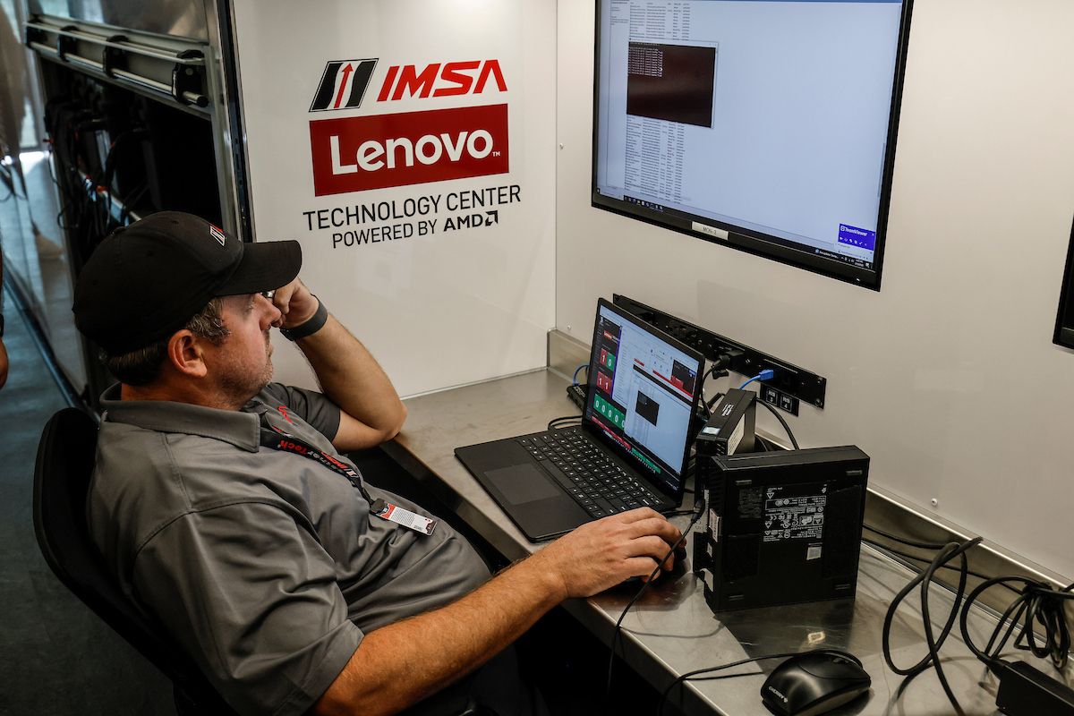 Partenaire de l’IMSA, Lenovo n’est pas un partenaire comme un autre. L’entreprise chinoise créée en 1984 soutient la série américaine en dépêchant sur chaque meeting de la saison le IMSA Lenovo Technology Center powered by AWD. Rien que ça.
