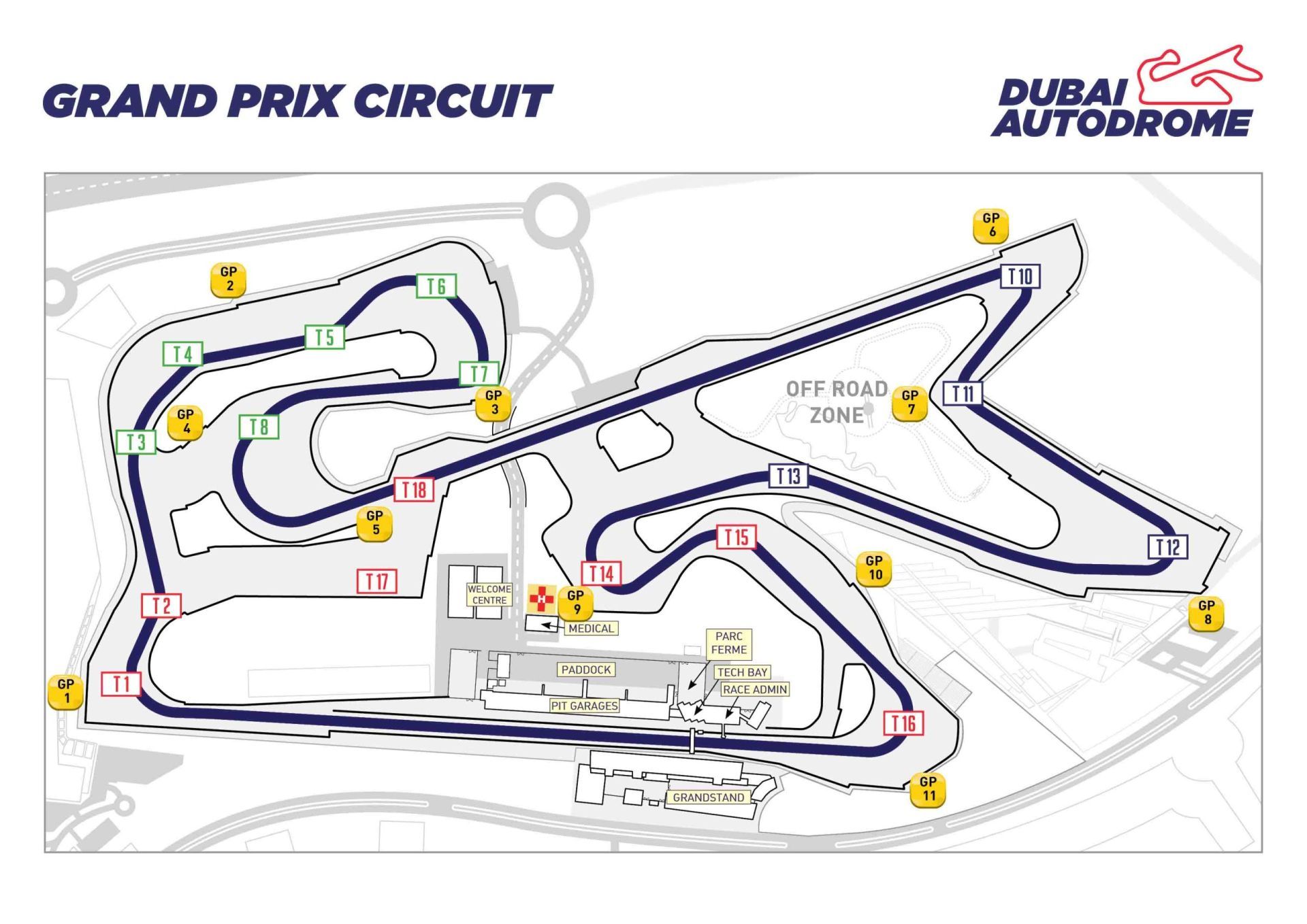 Dubaï accueille chaque année depuis 2006 l'épreuve de 24 heures, avec en classe principale les GT3. Le circuit possède un développement de 5,390 km, avec 17 virages. Après une première section sinueuse, le deuxième secteur voit le tempo s'accélérer, avec notamment la longue ligne droite et le gros freinage vers le virage n°10.