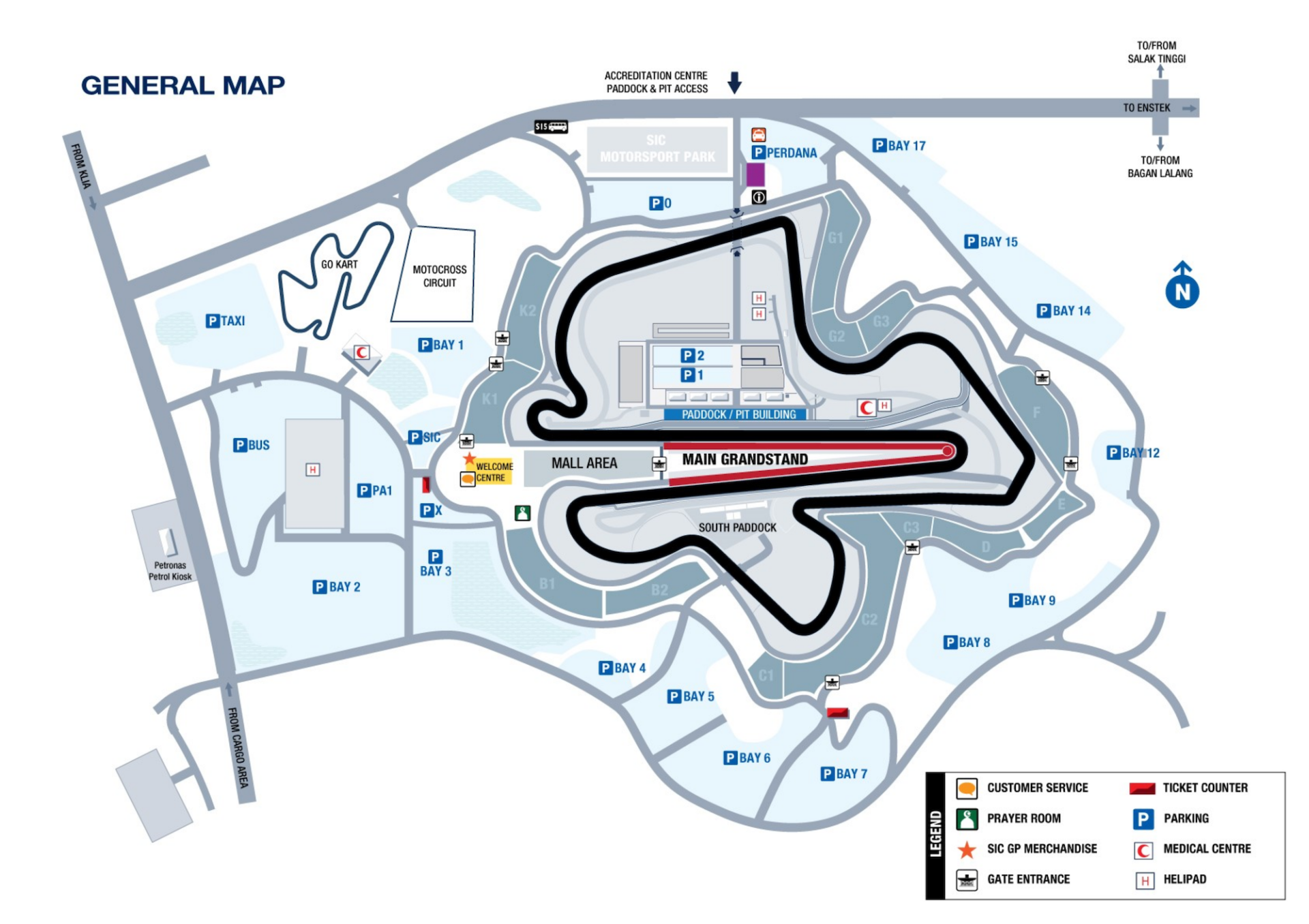 Le circuit proche de l'aéroport de Kuala Lumpur a été construit en 1998, avant son inauguration en mars 1999. s'étend sur 5,543 km, possède 15 virages avec deux très longues lignes droites dans sa dernière partie. Attention également à la météo, qui peut s'avérer extrême, et piéger bon nombre de concurrents.