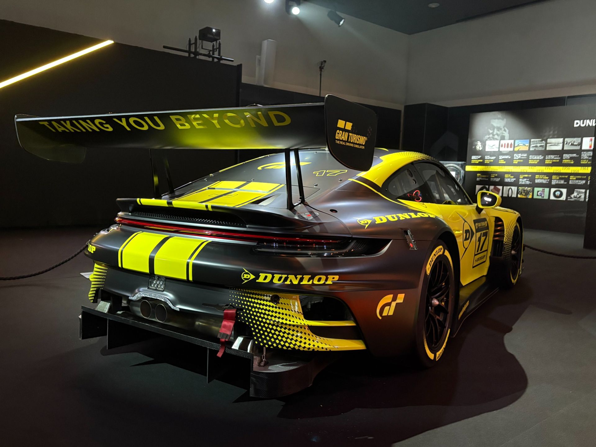 - GT3 - Vous avez certainement vu passer ces derniers jours une Porsche 911 GT3 R aux couleurs Dunlop. La livrée fait suite à l'arrivée de Dunlop comme partenaire de Gran Turismo 7. Le manufacturier pneumatique fait son arrivée petit à petit dans jeu au gré des mises à jour. La Porsche est actuellement exposée au Centre des Congrès à Fukuoka.