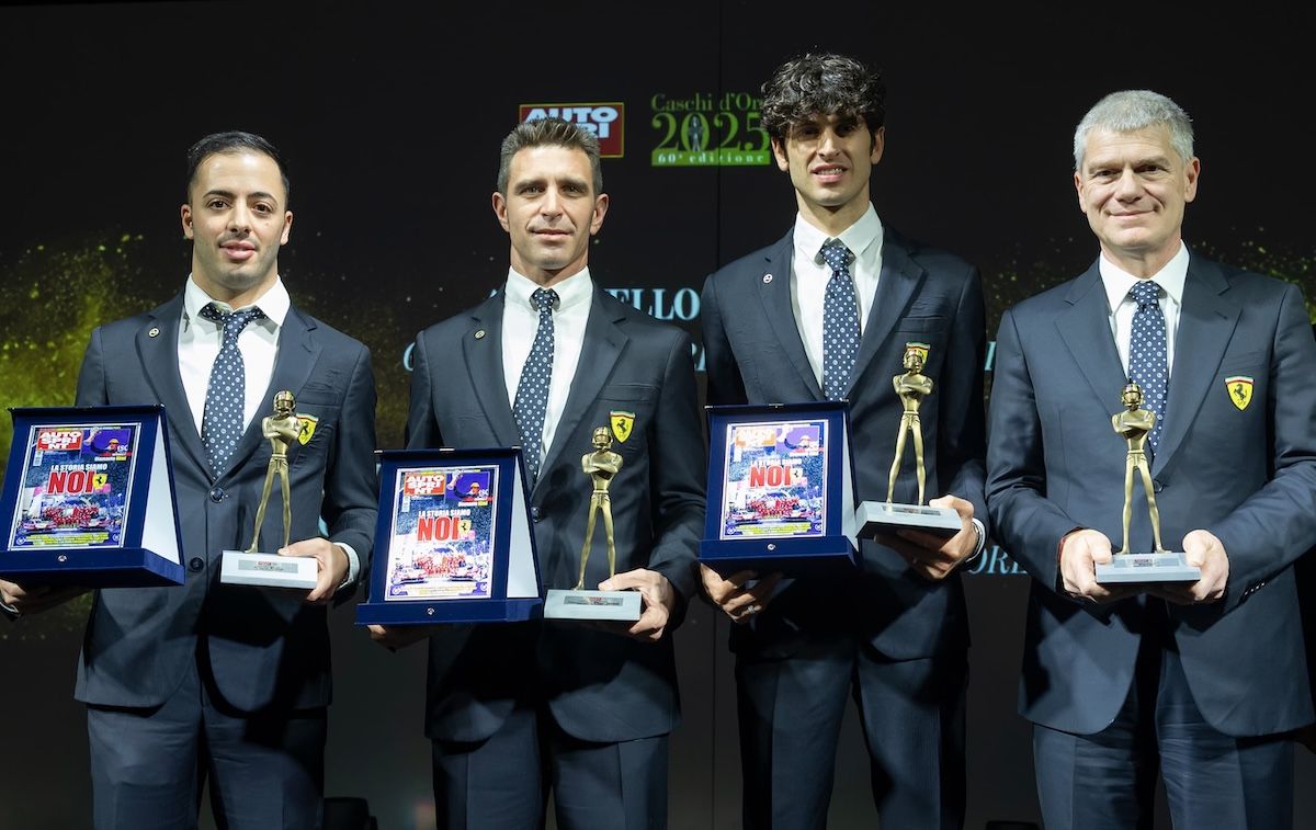 - WEC / Le Mans - Avant les célébrations des titres mondiaux qui auront lieu demain à Maranello, Ferrari AF Corse a été honoré lors des Caschi d’Oro de nos confrères d'Autosprint. Antonello Coletta, responsable des programmes Endurance, les trois pilotes champions du monde Alessandro Pier Guidi, James Calado, Antonio Giovinazzi, mais aussi Yifei Ye, Robert Kubica et Phil Hanson ainsi qu'AF Corse (pour le succès aux 24 Heures du Mans) ont été récompensés. Antonio Fuoco a reçu un Casque d'Or pour sa victoire à la Coupe du Monde FIA GT de Macao. Mirko Bortolotti (Lamborghini) a aussi reçu un Casque d'Or pour son succès aux 24 Heures de Spa avec Grasser Racing Team.