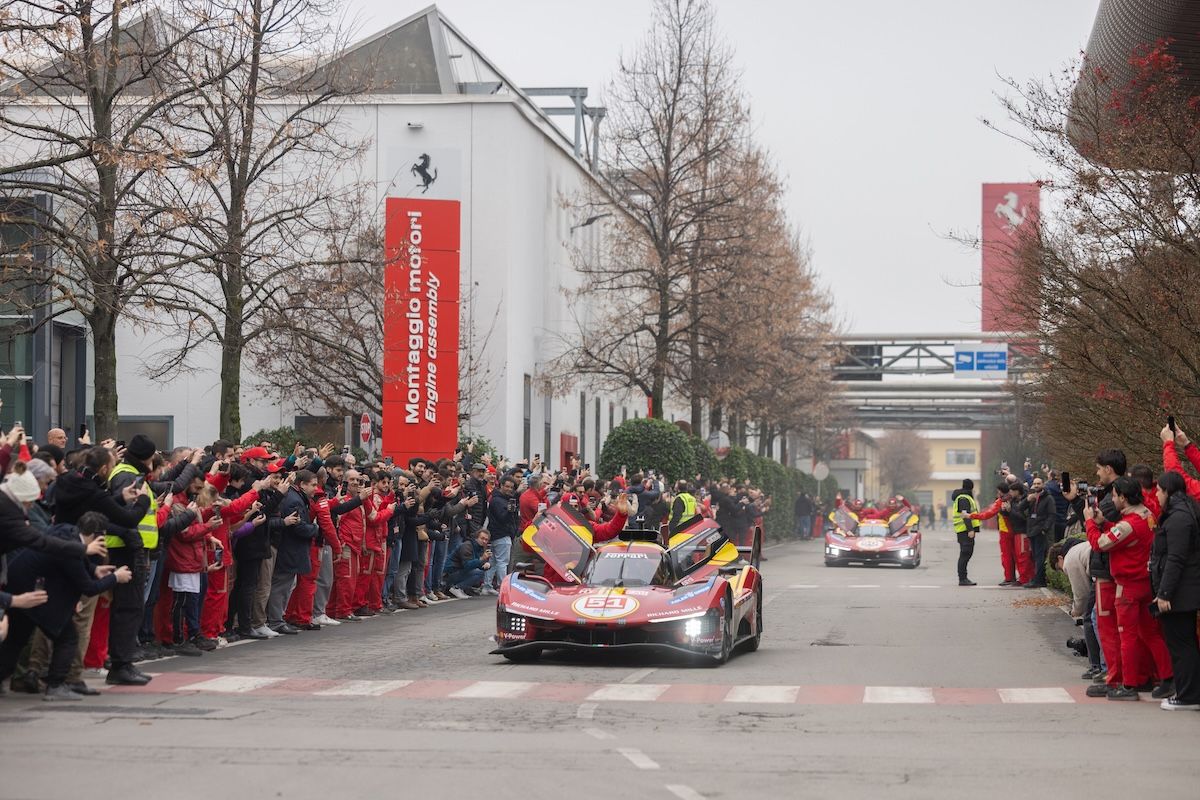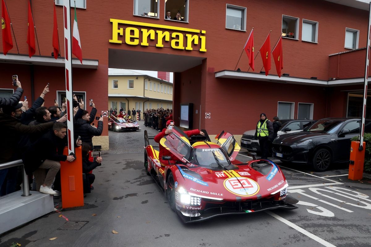 - WEC - Ferrari a réalisé les célébrations de ses titres mondiaux Pilotes et Constructeurs en Championnat du Monde d'Endurance ce jeudi à Maranello, avec les employés de la marque et les habitants de la cité italienne. Les champions du monde Alessandro Pier Guidi et Antonio Giovinazzi (James Calado étant absent pour raisons personnelles), Antonio Fuoco, Miguel Molina, Nicklas Nielsen étaient de la partie. Les Ferrari 499P ont paradé dans les rues de la ville en sortant par l'accès historique de l'usine Via Abetone Inferiore pour se rendre au musée Ferrari. Des séances d'autographes ont été organisées.