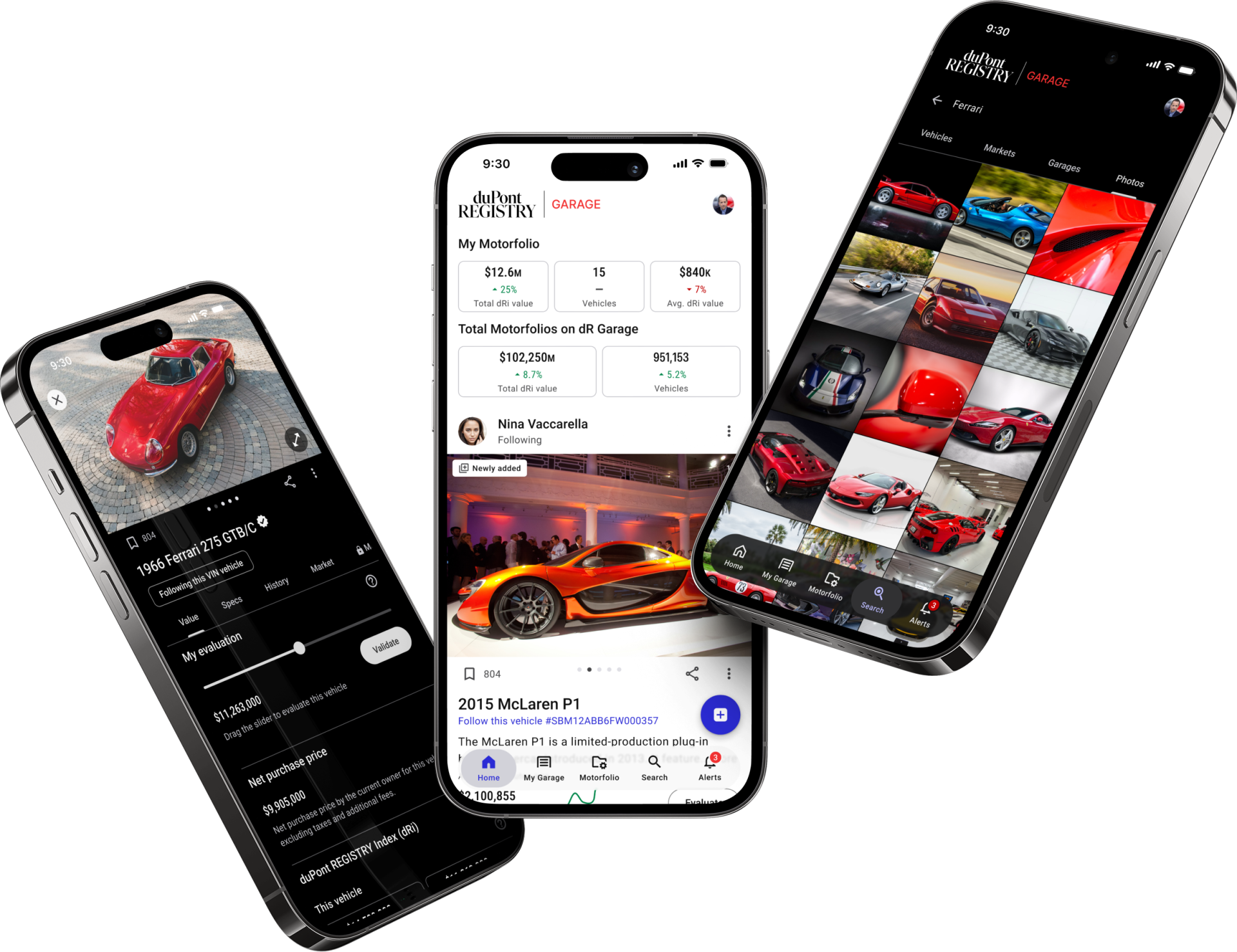 Avec l’application dR Garage, duPont REGISTRY met la technologie au service du patrimoine automobile. L’application centralise l’histoire et la valeur des véhicules de collection grâce à une taxonomie propriétaire et des algorithmes à la pointe de la technologie. « Nous voulons que chaque voiture ait son passeport numérique, a déclaré Eric Gilbert, en charge des projets spéciaux chez duPont REGISTRY. Qu’il s’agisse d’une Porsche 911 GT3 RS ou d’une voiture de course historique, notre outil permet de connaître son histoire, sa valeur et même son impact sur le marché. » Derrière le développement de l’application dR Garage se cache Eric Gilbert, créateur de Motorsport.com, qui a lancé par la suite Motorsport.tv.