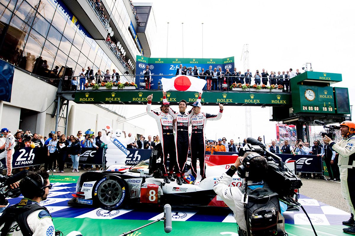 Il faut finalement attendre 2018 pour voir la première victoire de la marque d'Aichi. Si Audi et Porsche ne sont plus de la partie, Toyota réalise toutefois la course parfaite, et Sébastien Buemi, Fernando Alonso, venu de la F1 pour viser la Triple Couronne, et Kazuki Nakajima empochent les premiers lauriers de Toyota au Mans. Nakajima est le premier Japonais à gagner dans une voiture japonaise, alors que Toyota rejoint Mazda (1991 avec la 787B) au palmarès.