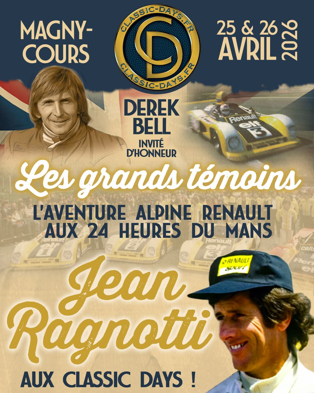 - Classic - Les Classic Days recevront Derek Bell en invité d'honneur les 25 et 26 avril à Magny-Cours. Jean Ragnotti sera lui aussi de la fête en terre nivernaise où l'aventure Alpine-Renault sera célébrée.