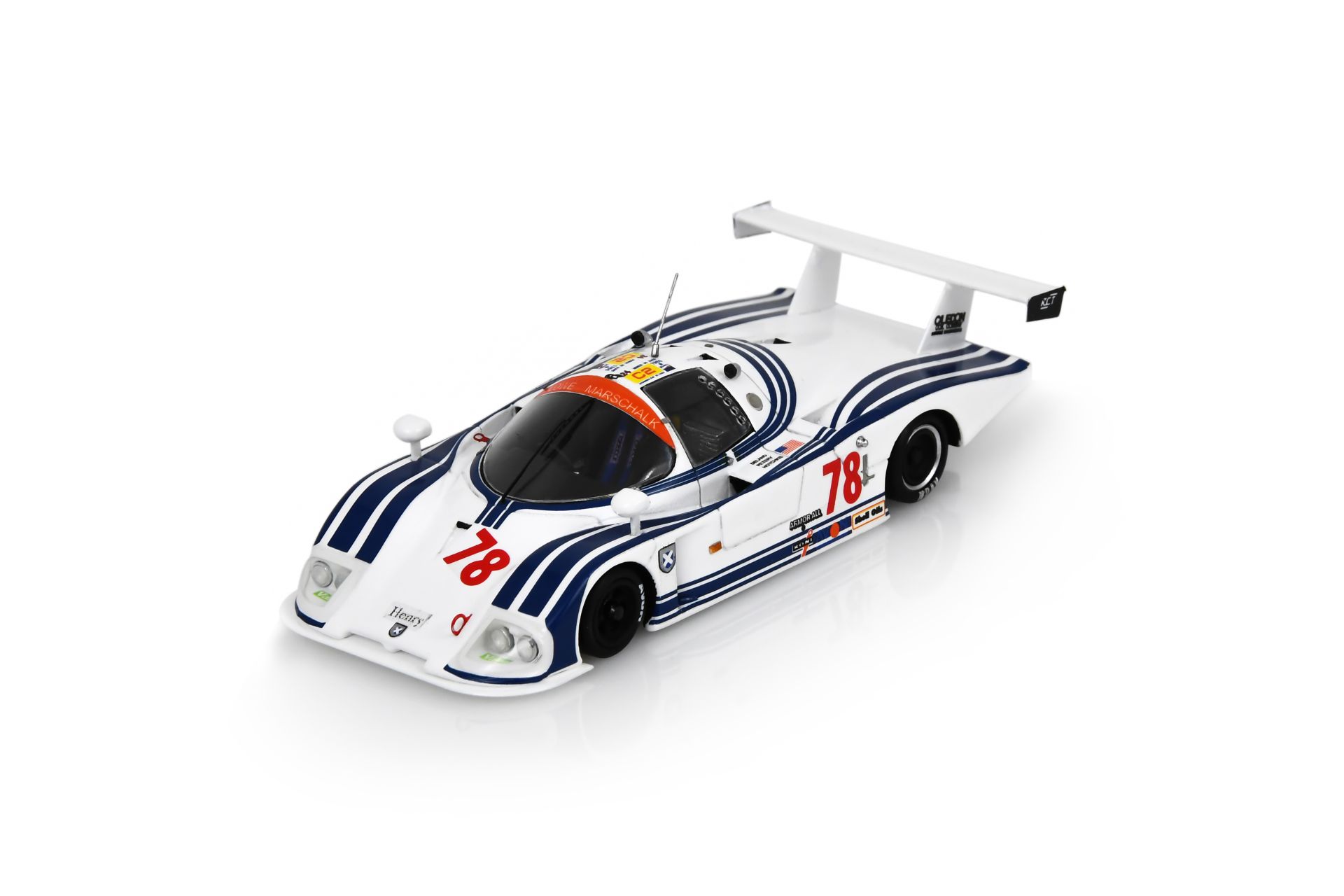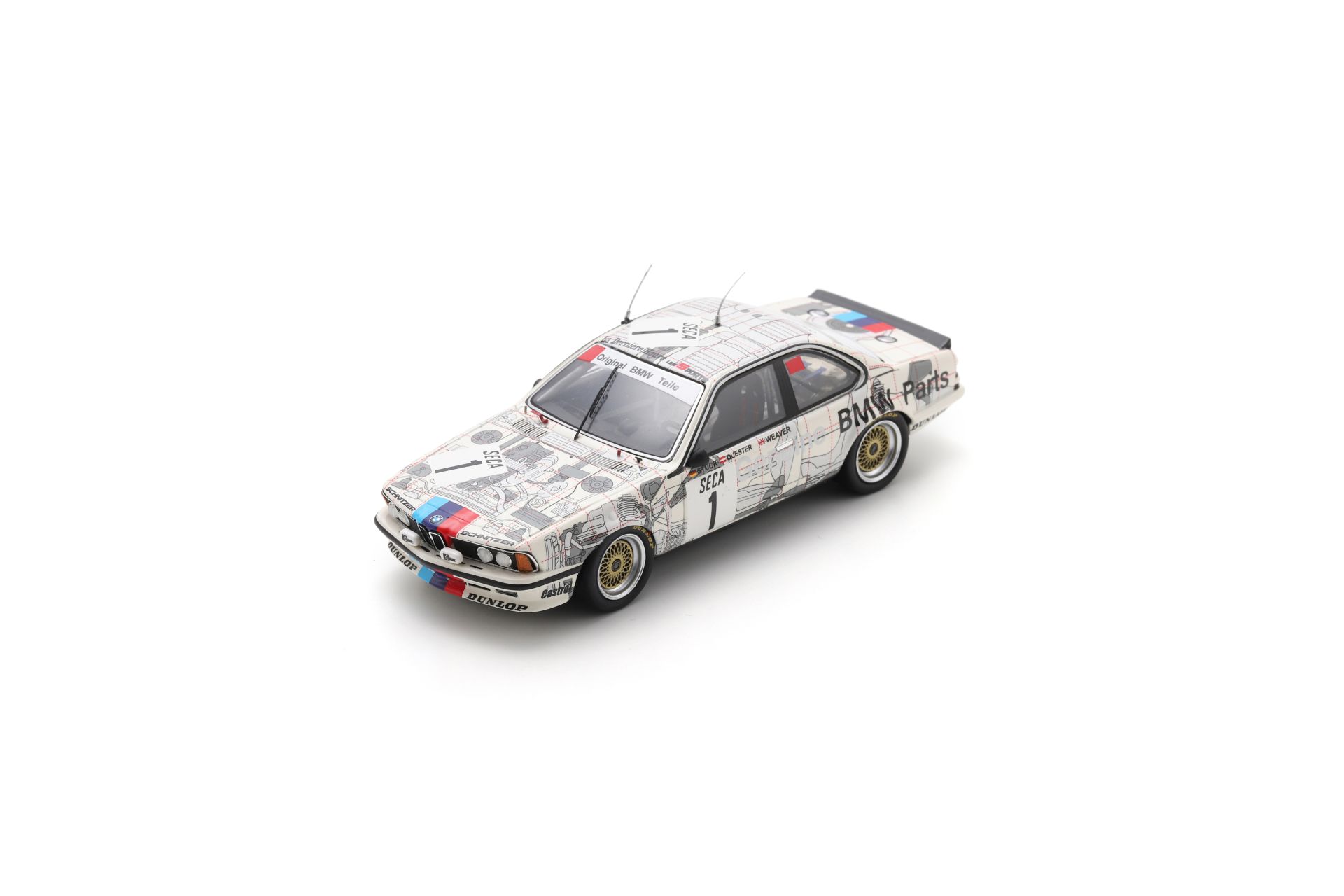 Placées sous le signe du duel Jaguar-BMW avec Rover comme arbitre, les 24 Heures de Spa 1984 disputées sous des conditions humides ont finalement souri à la marque britannique. Derrière la XJS de Walkinshaw-Heyer-Percy suivaient deux 635 CSi dont la n°1 de Stuck-Weaver-Quester 3ème avec une voiture à la décoration hors du commun. Coup de chapeau à Spark pour s’en être aussi bien sorti au 1/43.