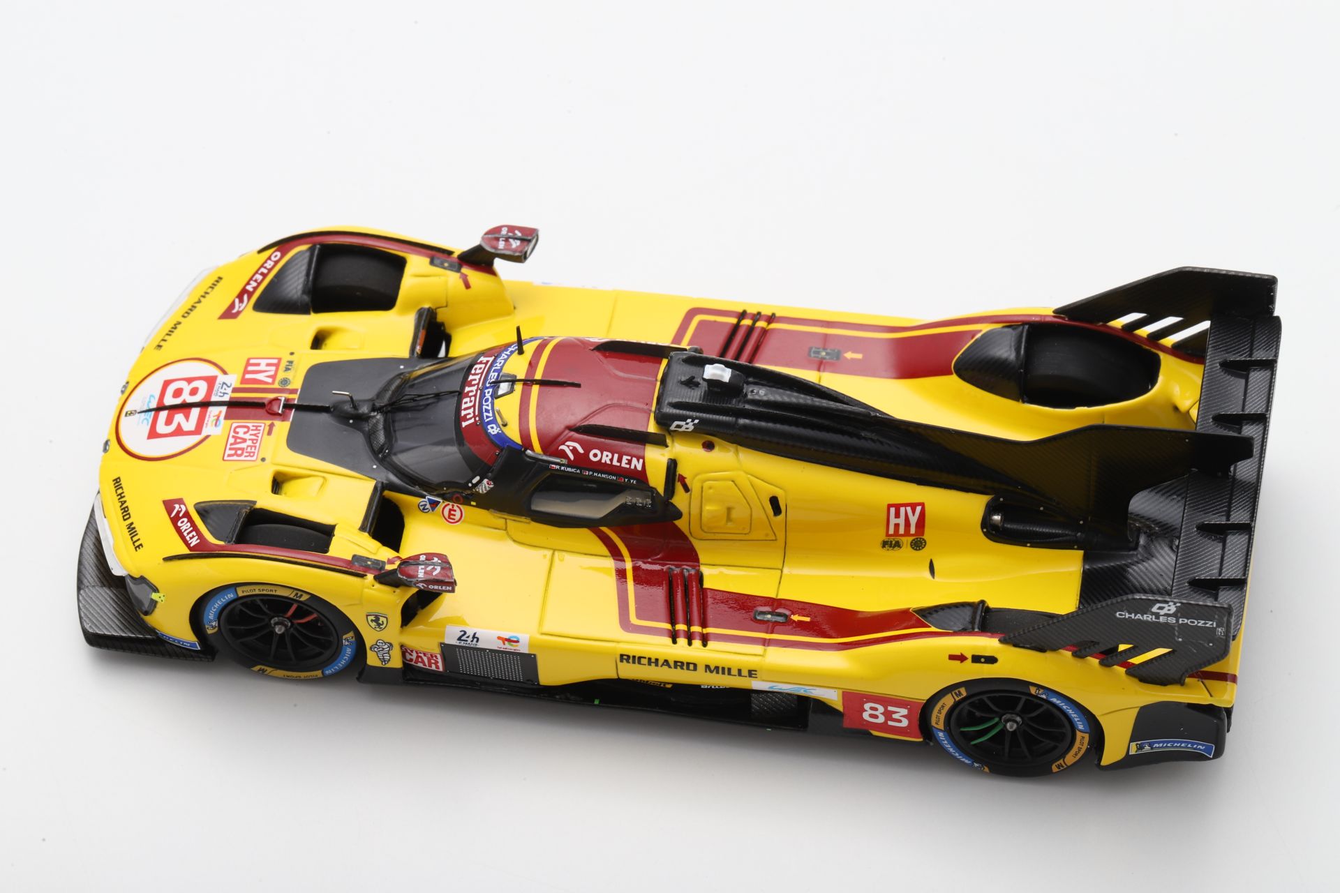 Cette miniature va occuper une place de choix dans nombre de vitrines. Car il a fallu attendre 2025 pour voir une voiture jaune s’imposer au Mans. En plus son numéro 83 est inédit sans oublier la nationalité du Polonais Robert Kubica ou du Chinois Ye Yeifi. Seul le Britannique Phil Hanson apporte une touche de déjà-vu alors que voilà les trois 499P jamais construites regroupées chez les collectionneurs après leurs victoires mancelles 2023 et 2024.