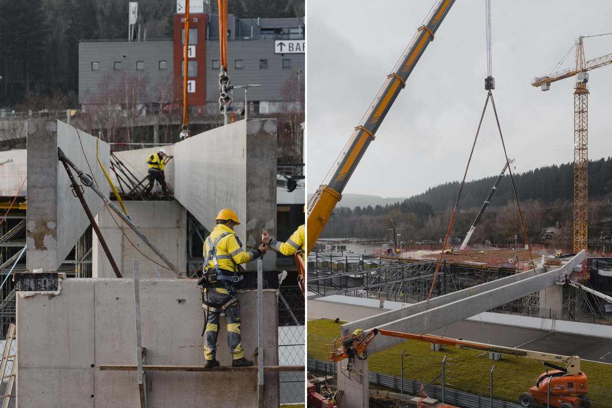 Au niveau de la future Uhoda Tower, la passerelle traversant le circuit au niveau des stands Endurance est en cours de pose.