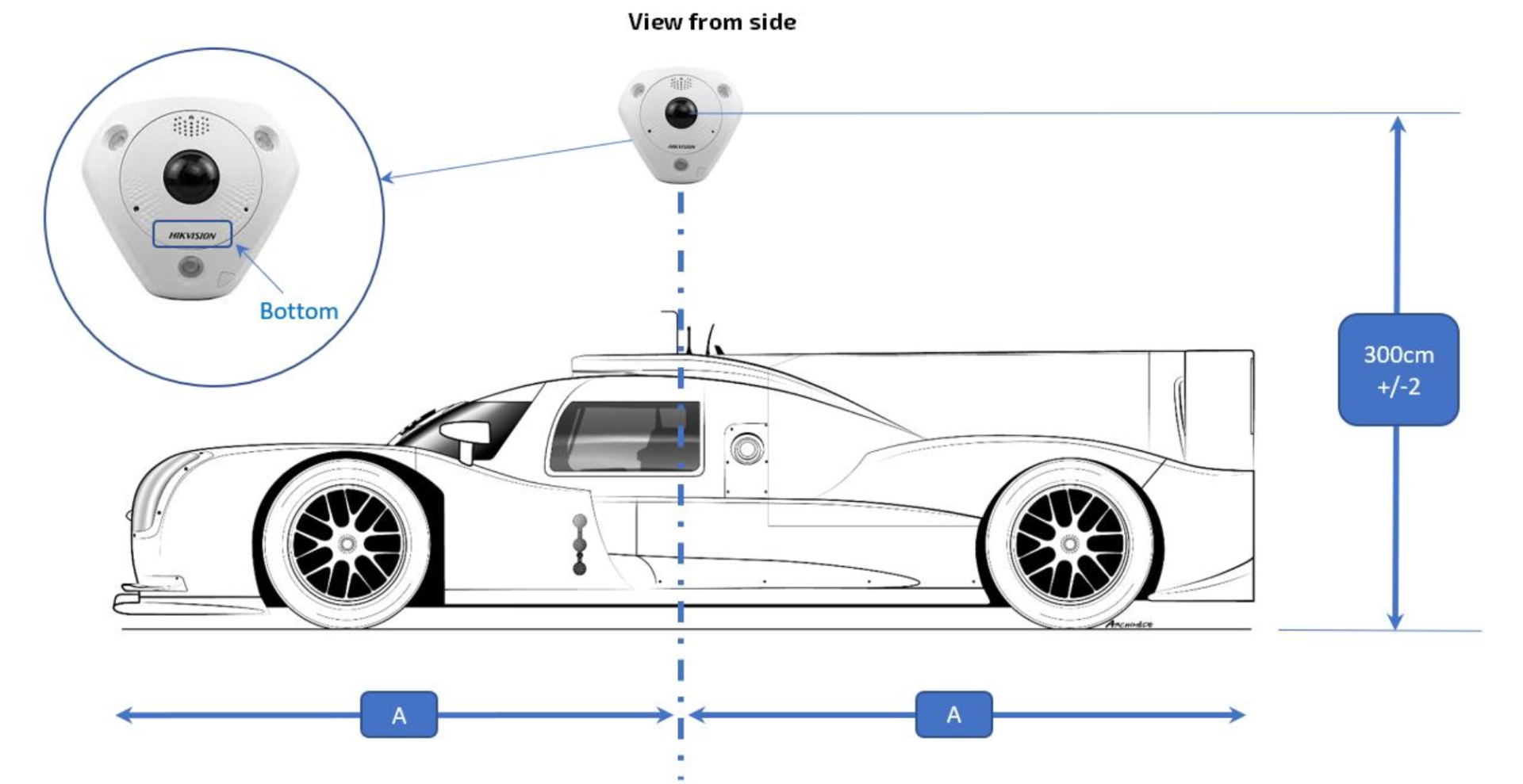 - WEC - Toutes les équipes devront fournir, installer et exploiter certains équipements vidéo ainsi qu’un outillage spécifique afin de satisfaire à certaines spécifications. En fonction de l’attribution du stand et de la zone de travail associée dans la voie des stands, une installation spécifique de la caméra est requise. Ainsi, vue de côté, l’objectif de la caméra doit être positionné face au véhicule, dans l’axe longitudinal médian de la voiture, en respectant l’indicateur inférieur, à une hauteur de 300 cm ± 2 cm.