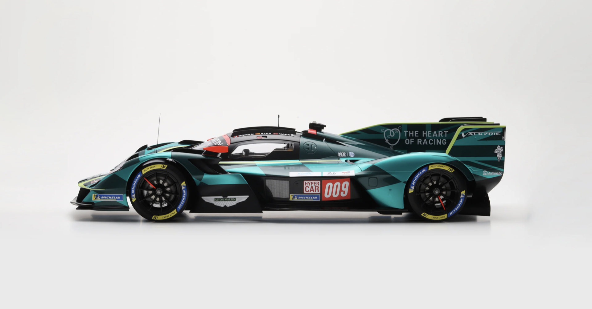 Depuis quelques années, Spark s’intéresse à cette échelle pour certaines éditions limitées. Le dernier modèle en date est l’Aston Martin Valkyrie LMH / The Heart of Racing. On devrait même parler des deux Aston Martin, puisque les n°007 et n°009 sont disponibles en pré-commande à l’échelle 1:8. Quant au prix, il est bien sûr nettement supérieur à celui d’une miniature au 1:43, mais le projet et le niveau de détail sont totalement différents, justifiant ce tarif unique.
