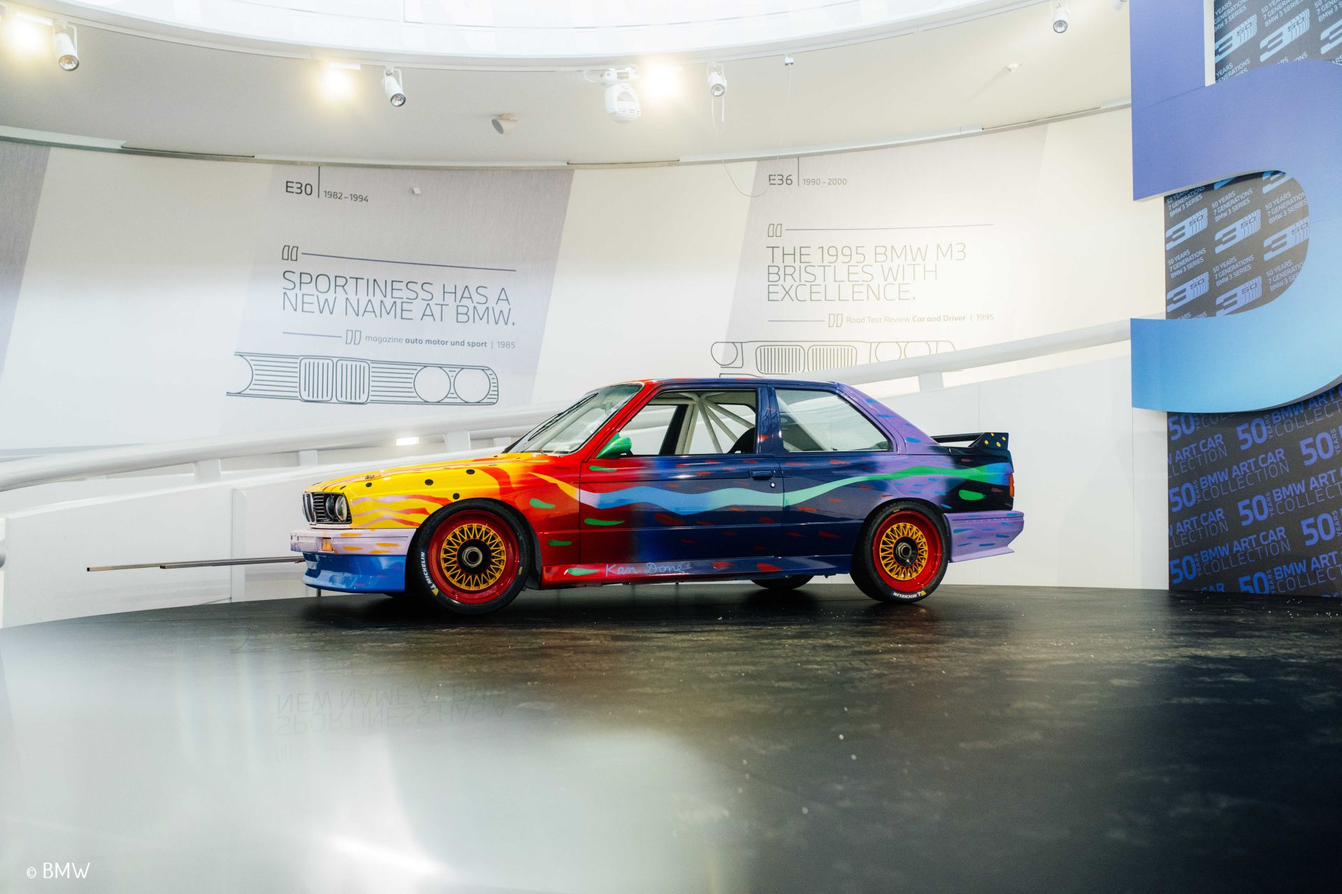 En 1989, Ken Done est invité par BMW à rejoindre la prestigieuse collection des BMW Art Cars. Il choisit comme support une BMW M3 Groupe A. Contrairement à d’autres artistes qui optent pour des références abstraites ou conceptuelles, Done souhaite représenter l’Australie moderne, lumineuse et dynamique.