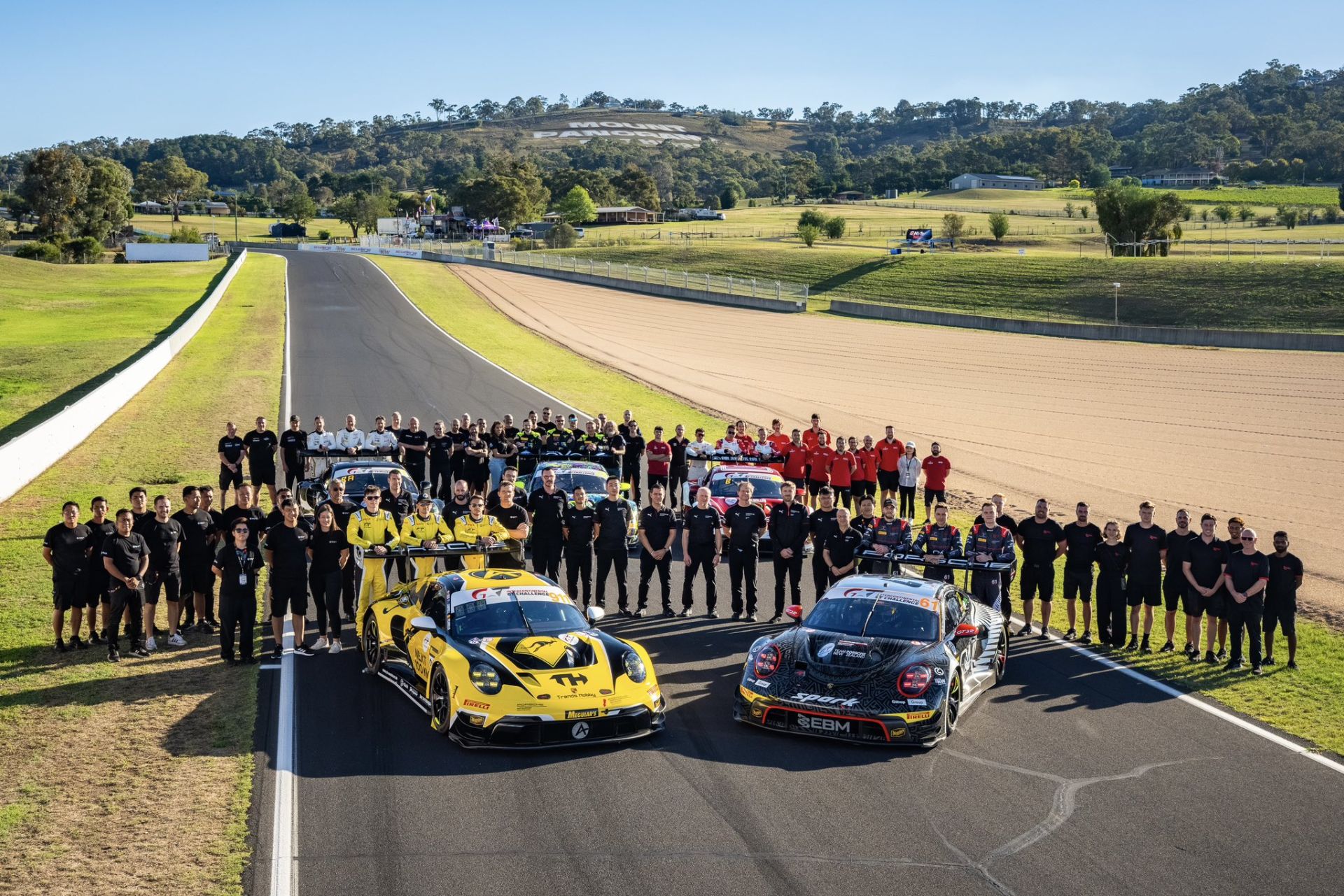 - Porsche est bien représenté cette année aux 12H de Bathurst avec pas moins de cinq 911 GT3 R. Cela valait bien une photo de groupe avant le début des festivités. Comme chaque année, Porsche Motorsport Asia Pacific est présent en soutien des engagements de la marque allemande.