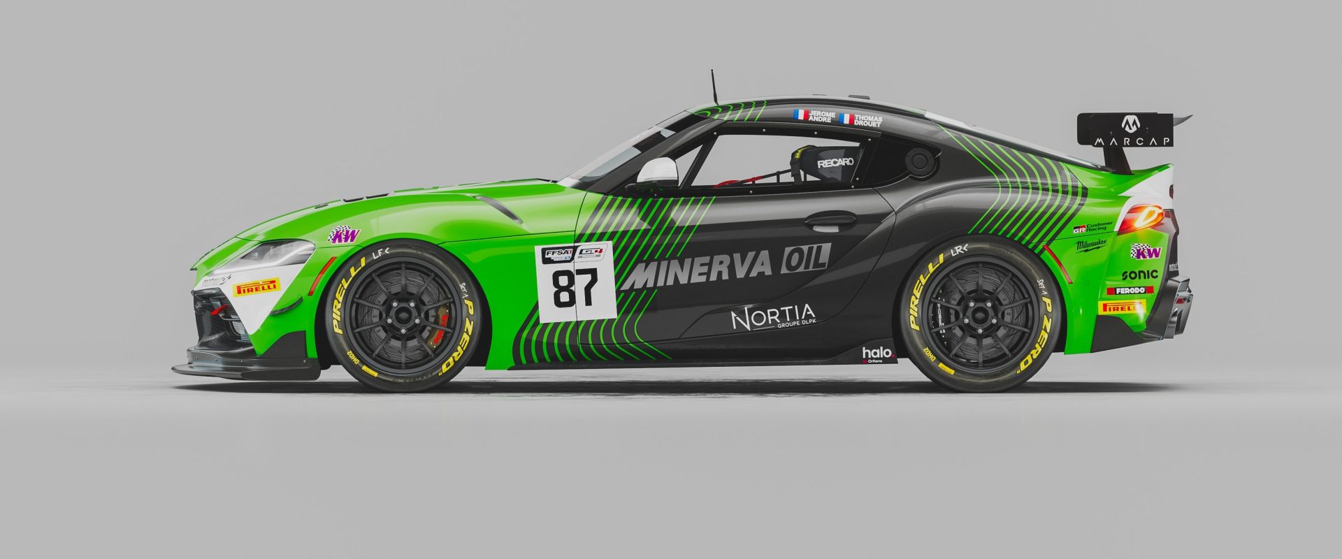 La Toyota GR Supra GT4 Evo2 #87, arborant les couleurs Minerva Oil, associera Jérôme André, pilote débutant en FFSA GT, à Thomas Drouet, fin connaisseur du Championnat de France GT qui était encore en GT World Challenge Europe la saison dernière.