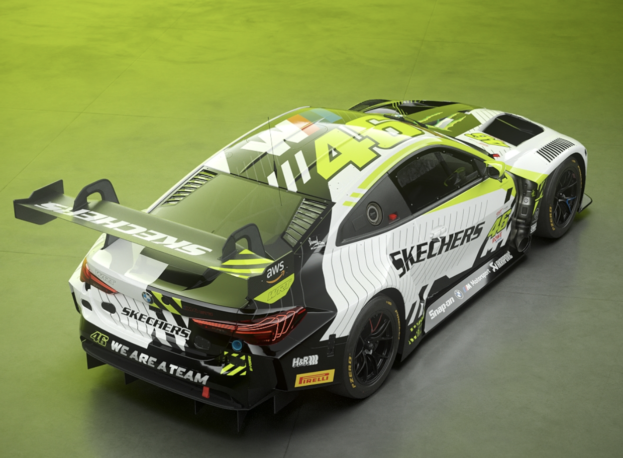 Pour marquer cette nouvelle campagne, la BMW M4 GT3 EVO n°46 adopte une nouvelle livrée noire et blanche, toujours fidèle au célèbre numéro de Rossi. La BMW sera bien entendu alignée par Team WRT.