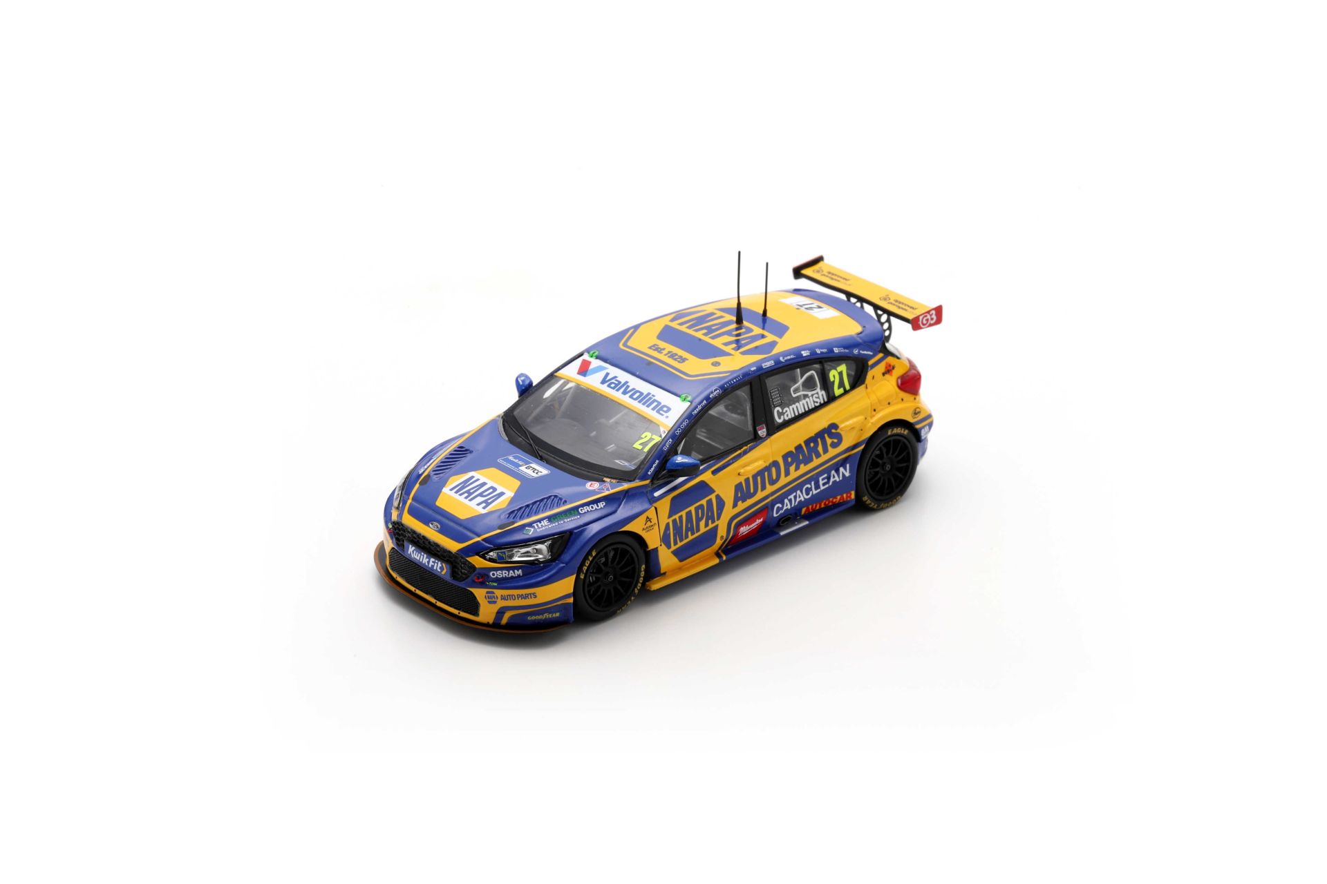 Avec ses airs de ‘’ petite ‘’ NASCAR dû à un partenaire – l’accessoiriste automobile NAPA – rarement vu hors des Etats Unis, cette n°27 n’est autre que celle de Dan Cammish 3ème du BTCC 2025 grâce – entre autres – à une victoire à Snetterton. Est aussi disponible une variante Valvoline (réf. UK031) correspondant à un autre succès cette fois à Donington.