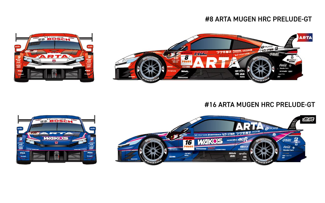 - Super GT - Il sera difficile de confondre les deux Honda Prelude-GT alignées par ARTA cette saison avec deux livrées bien distinctes. La n°8 de Kaku Ohta et Hiroki Otsu est rouge, la n°16 de Tomoki Nojiri et Ren Sato bleue.