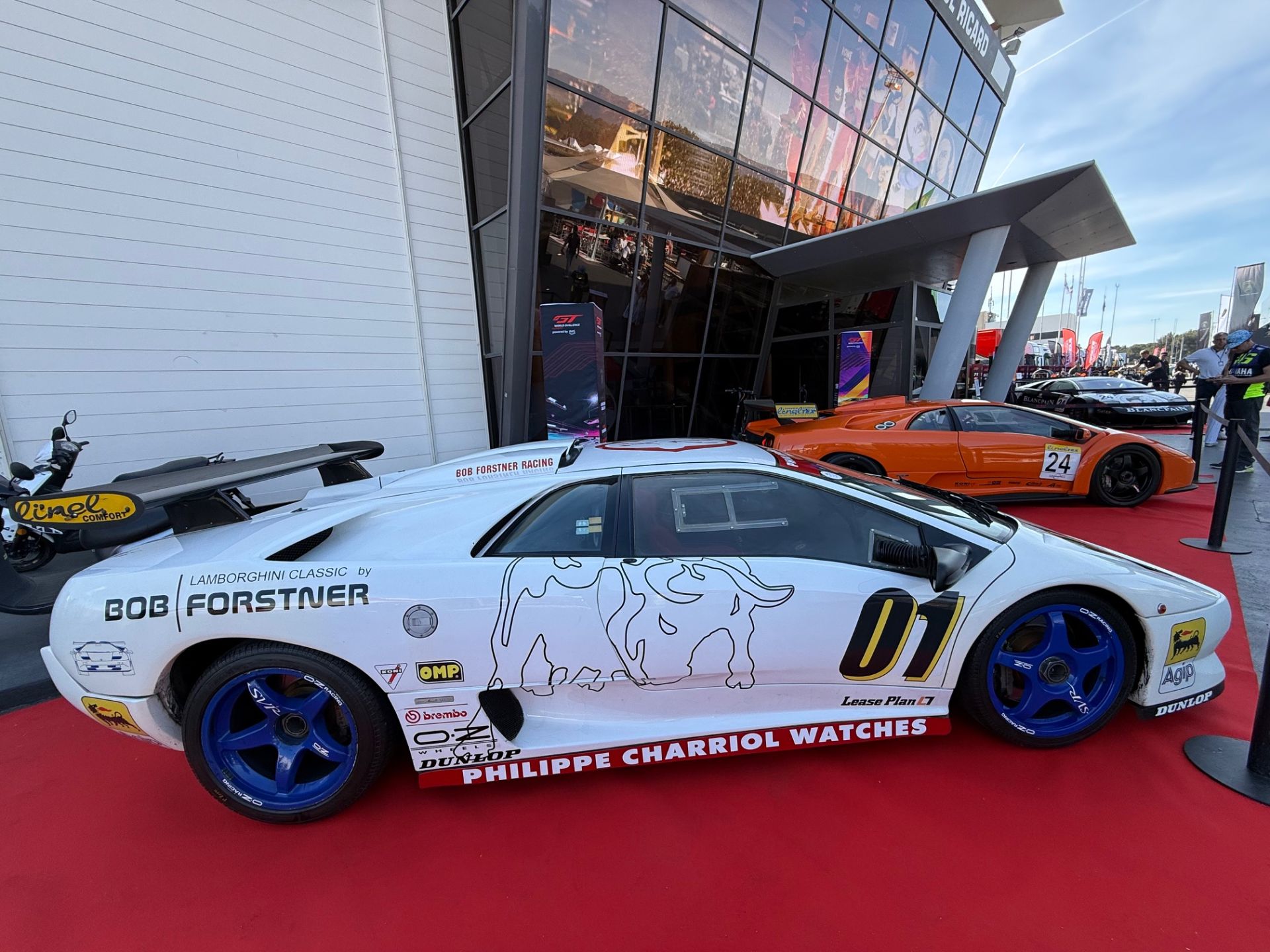 - L'exposition Lamborghini sur le rond-point du paddock du Paul Ricard et près du bâtiment principal vaut le détour. Les voitures, dont la Lamborghini Diablo SV-R, arborent pour la plupart une plaque 30 ans du SuperSport Trophy.