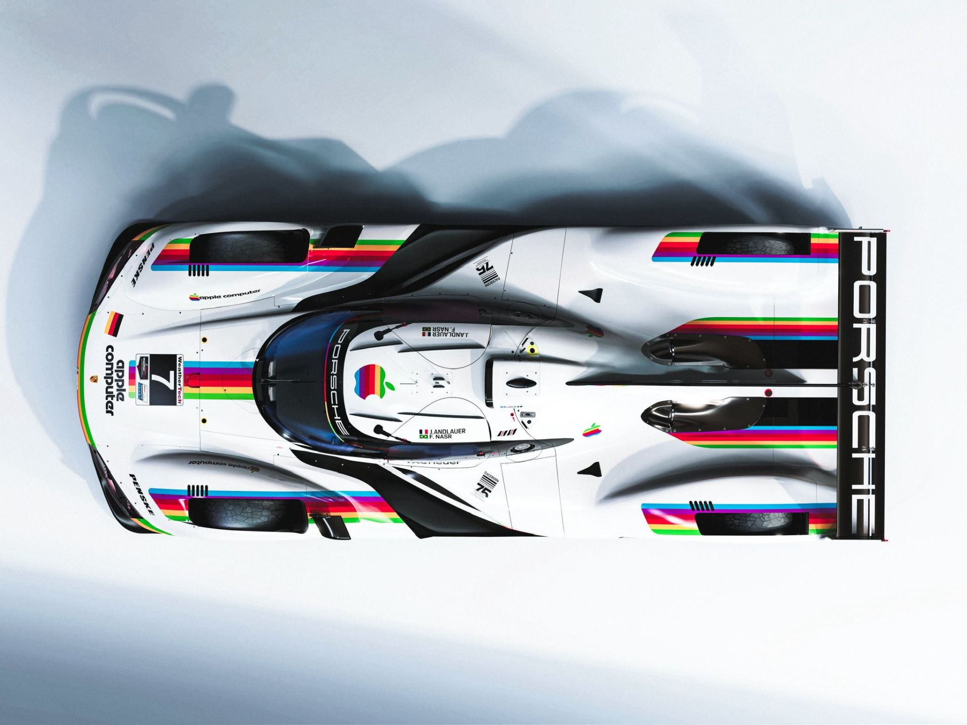 Après le lancement de la collaboration entre Porsche Penske et Apple à Long Beach (Californie), avec une livrée plutôt sage Apple Music, la marque allemande fera une nouvelle fois appel à sa glorieuse histoire en Endurance pour la dernière décoration en date sur ses 963 GTP, ce week-end à Laguna Seca (Californie). Le tout dans le cadre des 75 ans de Porsche Motorsport et des 50 ans d'Apple.