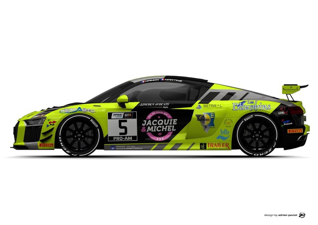 2020 marque le retour sur les circuits de la paire Hamon/Martins. Le tandem roulera en Pro-Am et leurs adversaires sauront qui remercier quand ils verront passer l'Audi R8 LMS GT4 jaune et grise.