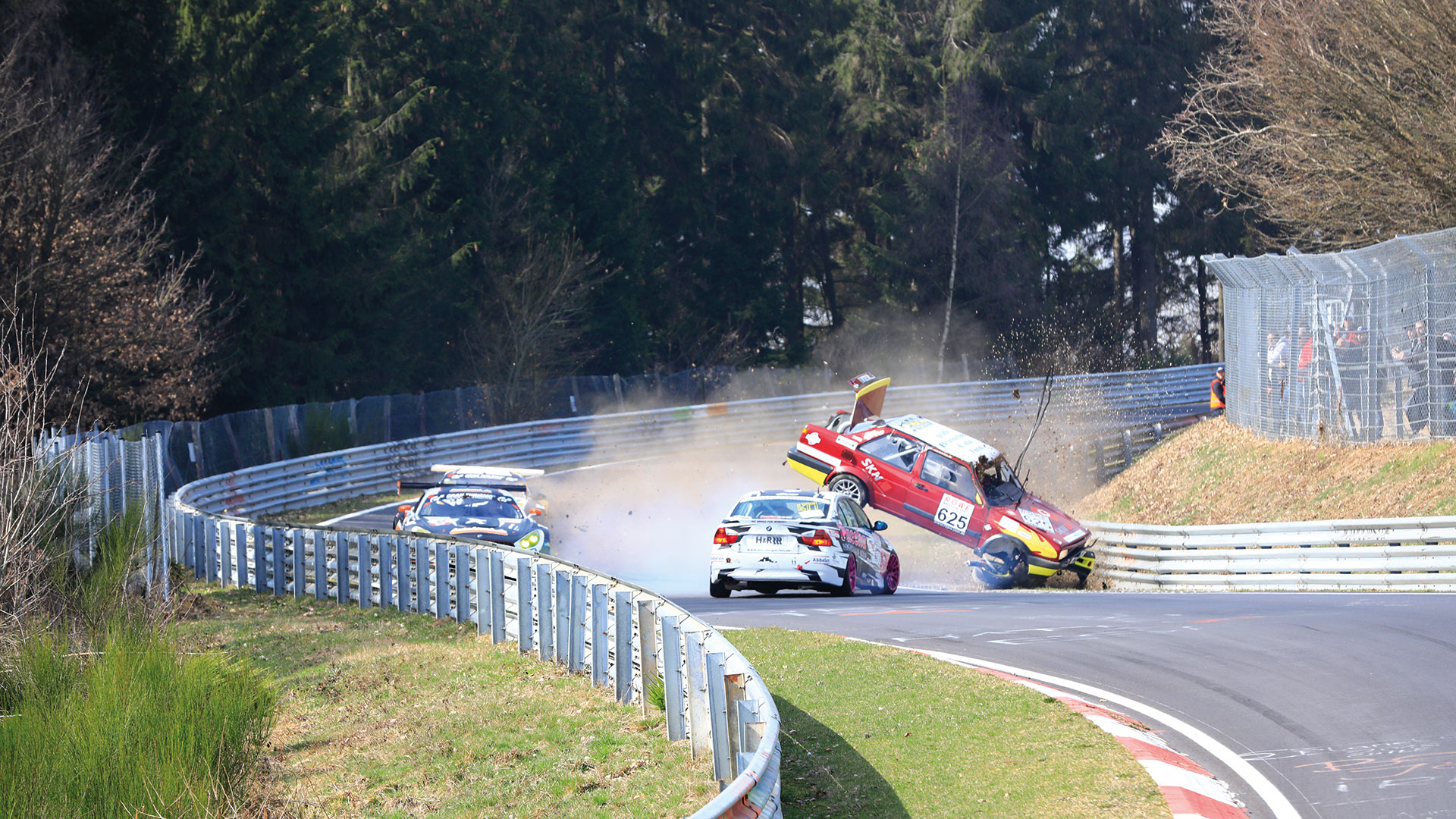 La solidarité a une nouvelle fois frappé en sport automobile, cette fois en VLN. En mars dernier, la Volkswagen Jetta 16V/XXL Racing a connu une violente sortie de piste avec pas moins de six tonneaux pour Stefan Lohn, alors au volant pour le premier rendez-vous VLN de l’année. L’accident, qui a également impliqué une BMW 328, a eu lieu dans la partie de Brünnchen. Il ne restait plus grand-chose de la Jetta qui était bonne à mettre à la ferraille. Seule la trappe à carburant pouvait être réutilisée. Le moteur, la transmission, la boîte de vitesses, tout était hors d’usage.