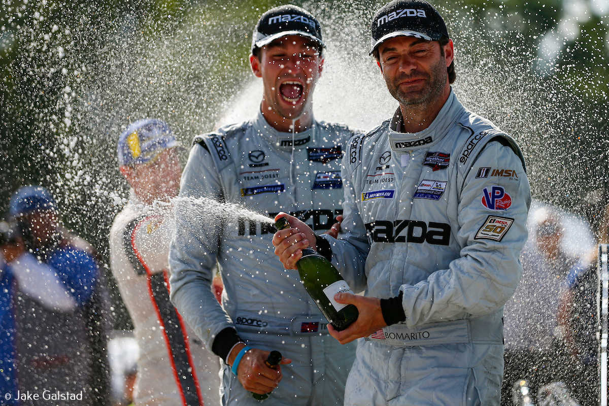 Et de trois pour Mazda Team Joest ! Harry Tincknell et Jonathan Bomarito ont imposé la Mazda RT24-P #55 dans le Wisconsin à l’issue d’une course longue de 2h40 sans la moindre interruption. Le tandem de la #55 a devancé de 0.227s l’Acura ARX-05C/Penske de Cameron/Montoya qui s’était élancée de la pole. La dernière marche du podium est revenue à la seconde Mazda, partagée par Oliver Jarvis et Tristan Nunez.