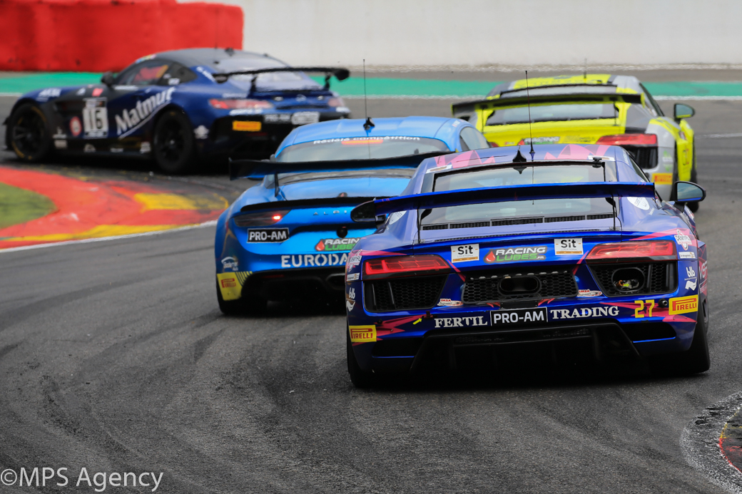 Partis en fond de grille après un changement de moteur avant les qualifications, Fabien Michal / Grégory Guilvert (Audi R8 LMS GT4 / Saintéloc Racing) parviennent à prendre le dernier point en jeu, mais perdent les rênes du classement général.