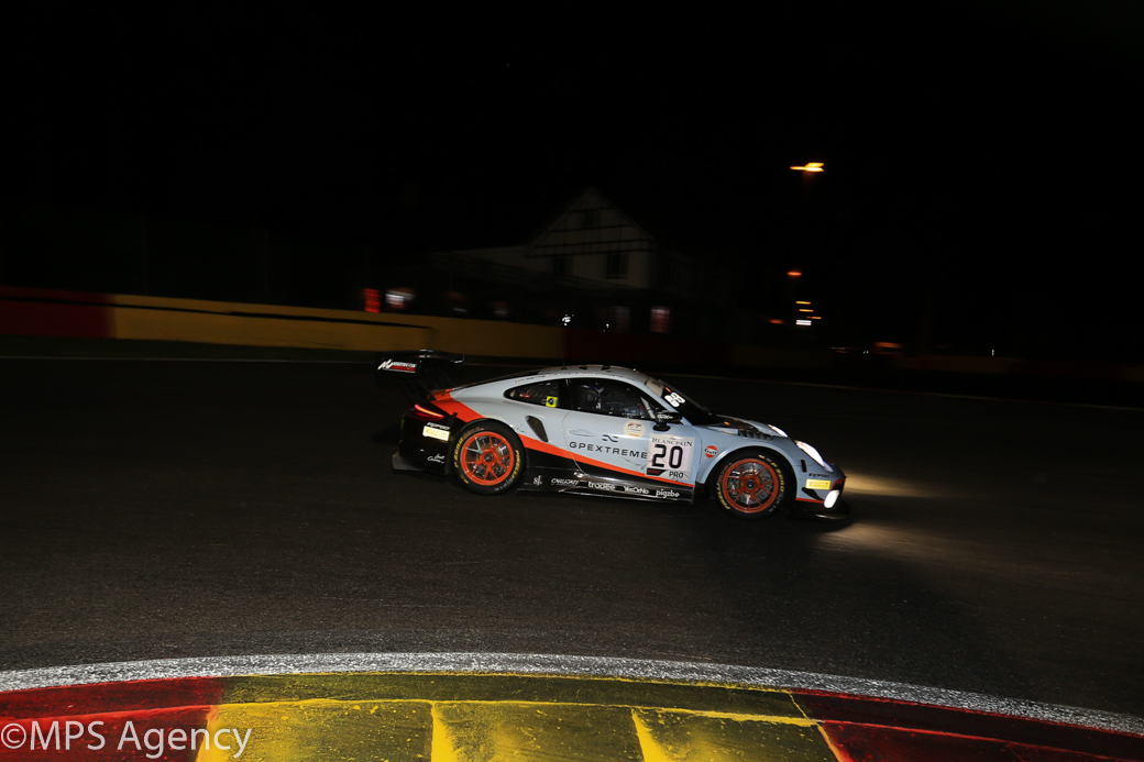 Lors de la séance de nuit qui a duré 1 heure 30, les concurrents ont pu se familiariser avec l’obscurité et réaliser leurs tours obligatoires dans ces conditions. La Porsche 911 GT3-R #20 de GPX Racing de Estre / Christensen / Lietz a été la plus rapide en 2’20’’290. Le trio de pilotes officiels Porsche devance la Ferrari 488 GT3 #227 de HubAuto Corsa et la Lamborghini Huracan GT3 #63 de Grasser Racing Team. L’Audi R8 LMS #2 de Team WRT suit devant une autre Lamborghini, la #563 d'Orange 1 FFF Racing Team !