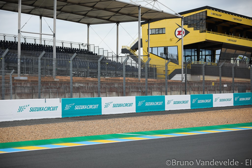 - Le circuit de Suzuka a établi un partenariat avec le Circuit des 24 Heures du Mans il y a quelques mois. La première étape de cette collaboration concerne la moto. Les couleurs du Suzuka Circuit sont bien en place sur la ligne droite des stands.