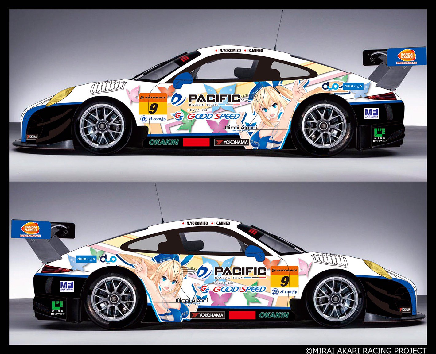 Le personnage Mirai Akari est à l'honneur sur la Porsche 911 GT3-R/Pacific Racing with Good Speed. Le nom de la machine est d'ailleurs Pacific Mirai Akari NAC Porsche. Naoki Yokomizo et Kyosuke Mineo se partageront le volant de la 911 GT3-R cette saison sur les circuits empruntés par le SUPER GT. Cette Porsche est la seule engagées à ce jour en GT300.