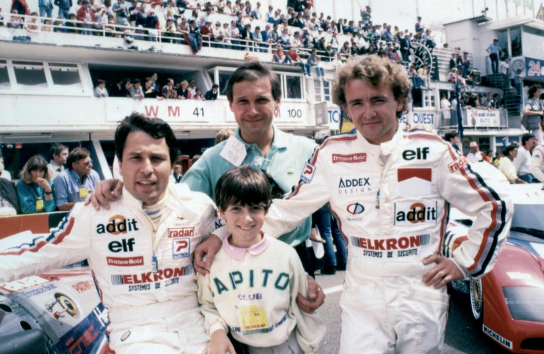 Gautier : "Mes premières 24 Heures du Mans en 1986. Mon sourire sur la photo avec Philippe Alliot et Michel Trollé (photo de Une, ndlr) suffit à illustrer mon bonheur. Tout me semblait immense, les voitures étaient fantastiques et le bruit au départ de la course m’a tétanisé ! Ce jour-là j’ai attrapé le virus du Mans et heureusement il n’existe pas de vaccin ! Après une petite balade sur la grille de départ, j’ai suivi le début de la course entre le stand et le muret de panneautage. Je n’avais que 9 ans, j’étais en jean et en polo, bien entendu sans casque antibruit, et les commissaires de piste me prenaient la main pour m’aider à traverser la pitlane, totalement inimaginable aujourd’hui."