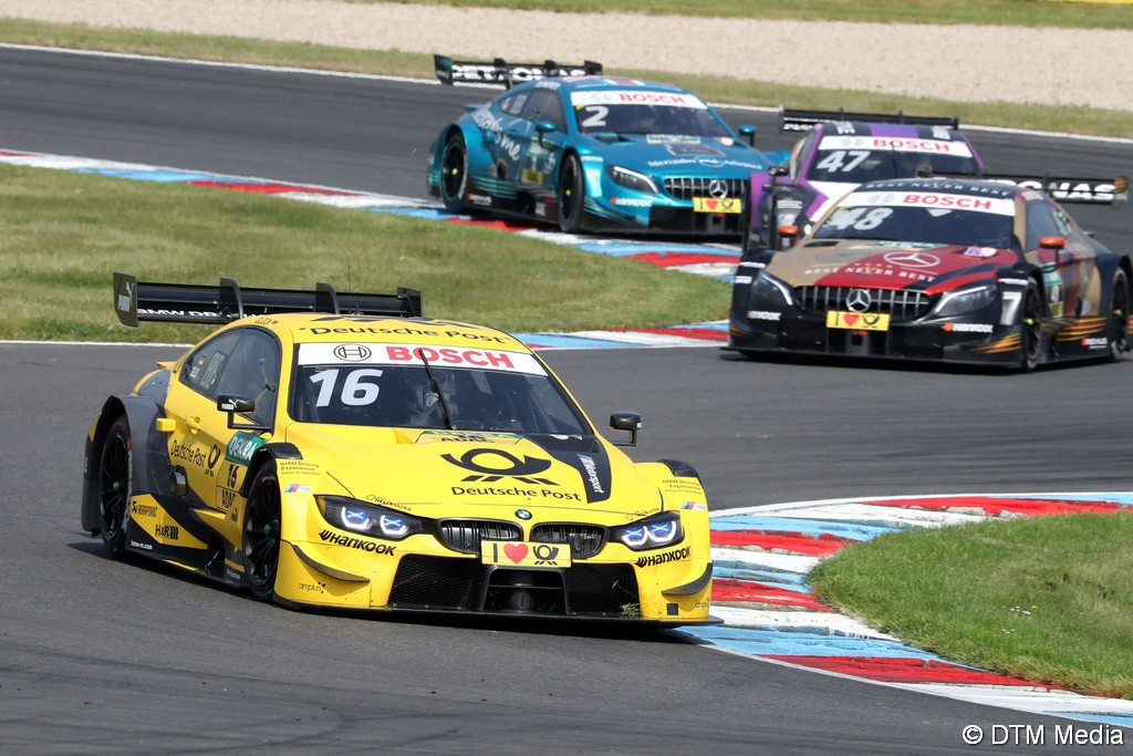 Auer attaquait Glock, mais les deux voitures sortaient un peu trop large, Philipp Eng en profitant pour les passer tous les deux. Eng n'allait cependant pas conserver la première place, car Edoardo Mortara, bien revenu et qui avait très bien géré son arrêt, prenait le meilleur sur la BMW et l'emportait avec moins d'une seconde d'avance sur Timo Glock qui avait réussi dans les derniers instants à passer Eng, ce dernier décrochant son premier podium en DTM. Pour Mortara, c'était le neuvième succès en DTM, mais le premier pour Mercedes-Benz, les huit précédents ayant été obtenus avec une Audi.Timo Glock prend un peu de champ au classement pilotes dont il est le leader avec 62 points contre 45 à Gary Paffett (Mercedes-AMG), 37 à Mortara et 33 à Auer. Le mieux classé des pilotes Audi est Mike Rockenfeller, septième avec 18 points.Le classement est là