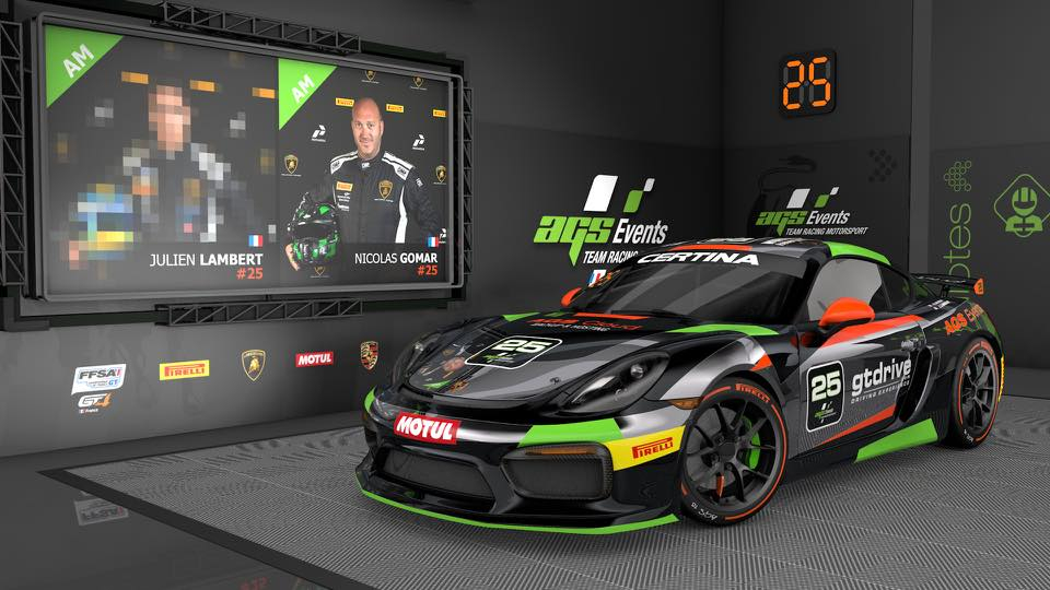 En plus de faire rouler trois Lamborghini Huracan Super Trofeo, AGS Events fera ses débuts en Championnat de France FFSA GT avec au moins deux Porsche Cayman Clubsport MR GT4 alignées dans la classe Am. Nicolas Gomar et Julien Lambert se partageront le volant d'une Porsche à dominante noire. AGS Events a racheté la monture du Energy by ART. Le second châssis arrive du British GT.Lauris Nauroy et Eric Herr seront au volant de la seconde Porsche. Les deux Cayman étaient en essais hier à Magny-Cours. AGS Events réfléchit aussi à aligner une Audi R8 LMS GT4 en Pro-Am.