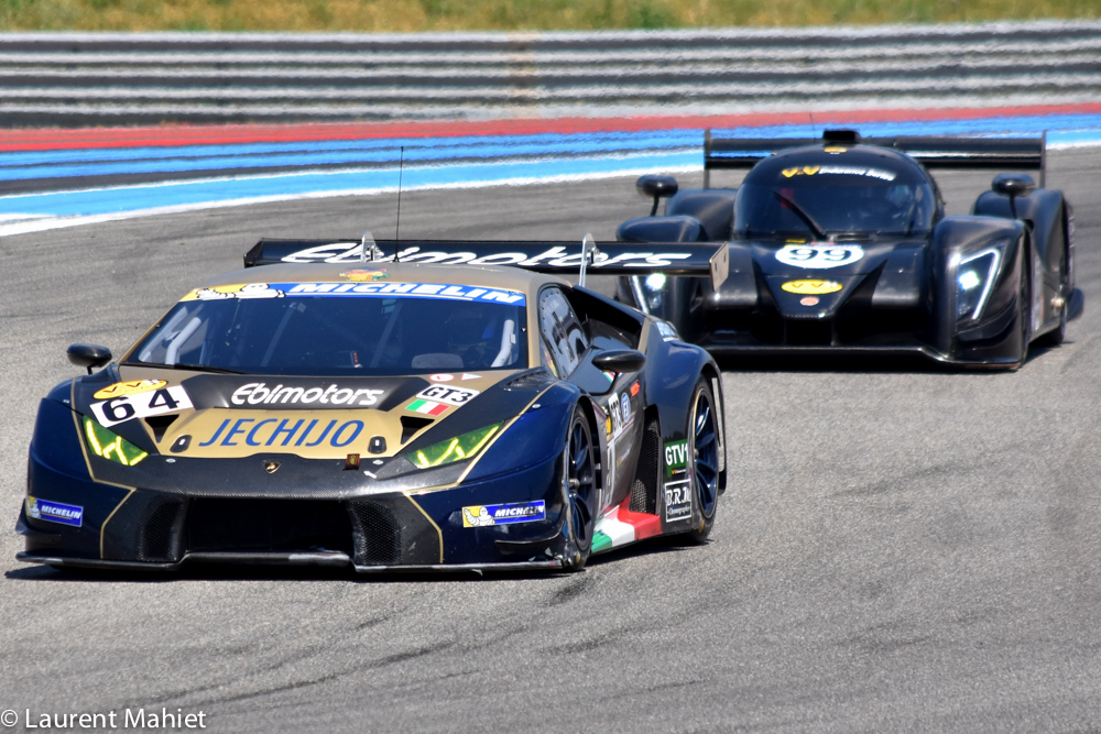 Communiqué de Presse : Le soleil était toujours aussi présent pour illuminer l’ultime journée de la troisième manche des V de V Endurance Series au Castellet. Le point finale d’un meeting de toute beauté, où le suspense aura régné jusqu’au bout. Rendez-vous à Dijon, fin juin.4 Heures Endurance GT/Tourisme/LMP/PFV V de VGT / Tourisme : Deuxième apparition en V de V, et deuxième victoire pour EbimotorsLes règles de l’endurance ont été respectées durant ces quatre heures, car c’est en faisant preuve de régularité, de fiabilité, et en soignant la stratégie que la Lamborghini Huracan GT3 n°64 Ebimotors s’impose aujourd’hui. Une victoire signée Emanuele Busnelli et Fabio Babini, les deux hommes qui avaient triomphé en octobre dernier à Magny-Cours, et qui confirment les règles de l’endurance sus citées puisque l’équipage ne s’est pas montré le plus rapide en piste. Cet honneur revient en effet aux deux autos qui ont animé la fin de course, à savoir la Ferrari 488 GT3 n°1 Visiom du trio auteur de la pole position, Pagny / Perrier / Bouvet, et la Lamborghini Huracan GT3 n°46 AB Sport Auto de Teneketzian / De Narda. Si cette dernière se révèle la plus rapide au chrono (en 2’06’’460), la première reçoit les honneurs de la deuxième place grâce à une offensive dans les dernières minutes. CMR with Sport Garage, 4e avec la Ferrari 458 GT3 n°44 de Mouez / Loger / Debs marque à nouveaux de précieux points, à l’image de la Renault R.S. 01 V de V / AB Sport Auto de Van de Vyver / Thybaud, victorieux du classement Prestige devant la Lamborghini Huracan Super Trofeo n°59 AGS Events de Gomar / Collado. Solution F, enfin, remporte le Prestige avec la SFV10 V8 Volvo n°96 de Charriol / Pourquie / Chardonnet.LMP / PFV : Double Ginetta en PFV, triplé Ligier en LMP3La logique des qualifications est respectée pour Ginetta qui, après avoir monopolisé les deux premières lignes de la grille, signent à la fin le doublé, Simpson Motorsport prenant l’avantage sur Nova Race grâce à la G57 n°6 de Mike Simpson et Simon Murray. Le duo britannique précède ainsi la n°99 italienne de Hibbert / Winslow, tandis que R-ace GP place, comme à Barcelone, sa Renault R.S. 01 Trophy sur la troisième marche du podium de la catégorie. Une performance toujours signée Perrodo, associé ce week-end à Collard à bord de la n°28. Une autre machine frappée du losange termine à la porte du Top-3, en l’occurrence la n°45 de Carugati / Pillon. Suivent les Ginetta n°52 Pegasus Racing n°52 (Muston / Jarvis) et n°32 Nova Race (Tomlinson / Robertson).