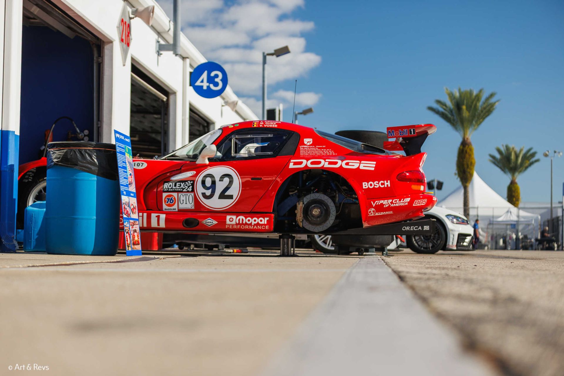 Racheté par Art & Revs, la structure de Florent Moulin, le châssis C27 a une histoire assez atypique. « A Daytona, le C27 était parti pour jouer la victoire mais elle a perdu 25’ le dimanche matin pour un problème de boîte de vitesses, explique son propriétaire actuel. Adolescent, je trouvais les Viper exotiques et j’ai toujours été intrigué par ces autos. Ce n’est pas pour rien que j’en possède sept. »