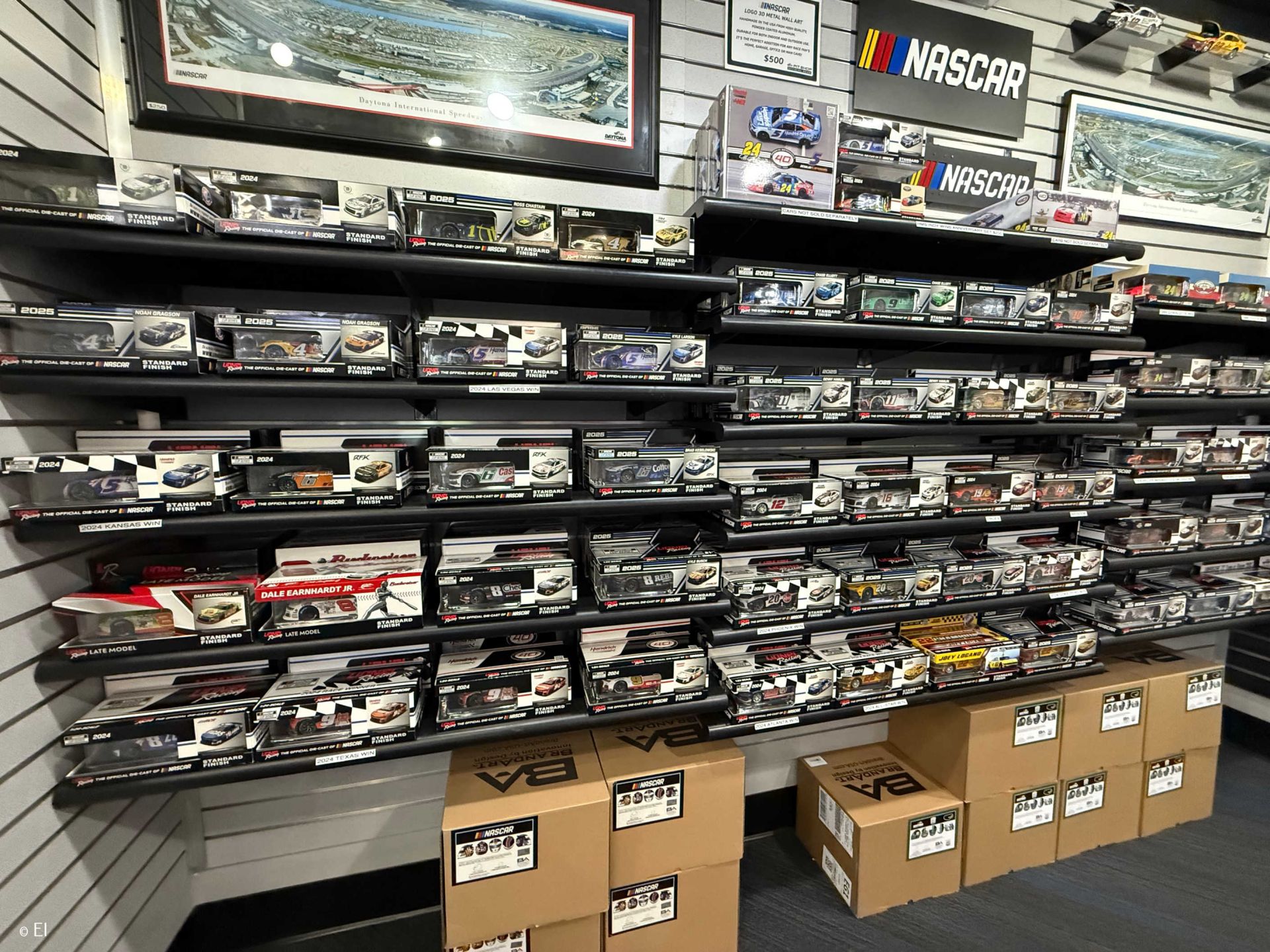 - Daytona est le temple de la NASCAR et la boutique du circuit fait honneur au championnat avec les différents modèles disponibles. Côté Endurance, seule la Chevrolet Camaro 'Garage 56' des 24H du Mans 2023 est présente à un prix bien trop élevé. En revanche, il est possible de trouver un vendeur sur le circuit qui propose des anciennes gloires du Grand-Am pour un prix intéressant. On ne va pas vous mentir, on a craqué pour Crawford DP03 / Spirit of Daytona Racing n°09 au 1/18, vendue avec des morceaux d'un pneu de la voiture qui a pris part aux 24H de Daytona 2004.