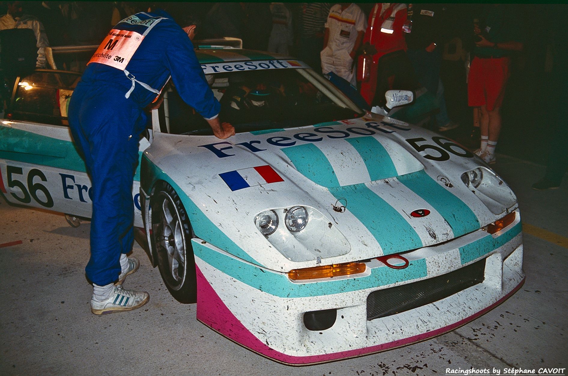 Alignée aux 24 Heures du Mans 1993 sous le numéro 56 dans sa livrée bleu, rose et blanc FreeSoft par Stéphane Ratel himself, la Venturi affiche d’emblée des ambitions sérieuses. Aux essais, le trio Costas Los – Johannes Badrutt – Claude Brana signe le 41ᵉ temps, 17ᵉ des GT.