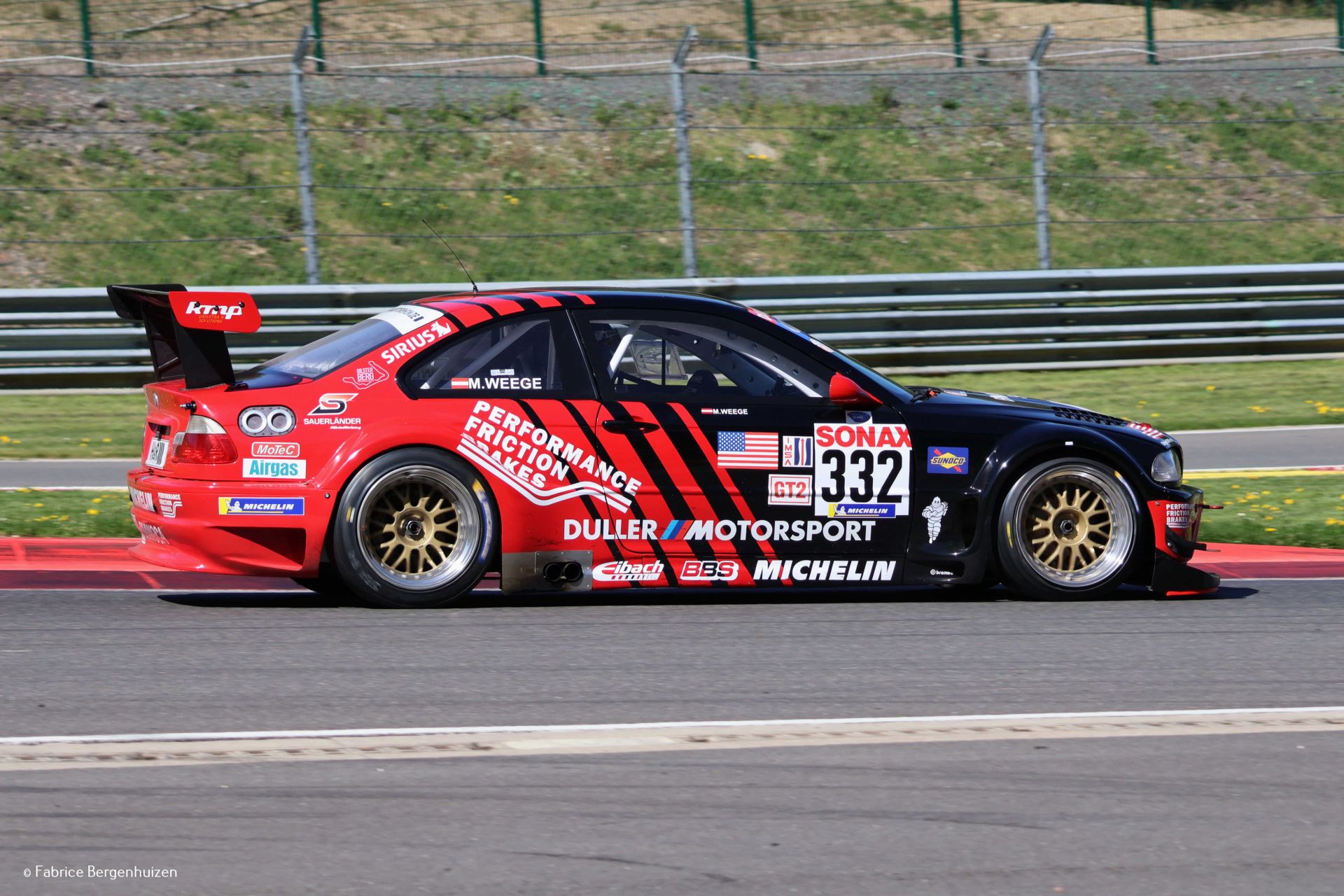 Brillante 2e de l'édition 2000 des 24H de Spa avec une BMW M3 Gr.N confiée au trio composé de Jean-Michel Martin, Thierry Tassin et Frédéric Moreau (une médaille d'argent qui faillit d'ailleurs virer à l'or, la Peugeot 306 victorieuse explosant son moteur une fois l'arrivée franchie), la formation autrichienne Duller Motorsport était, 26 ans après son plus grand fait d'armes, de retour dans les Ardennes belges. Qui plus est, avec dans ses bagages, une BMW E36 GTR et deux BMW M3 E46 aux superbes livrées "IMSA".